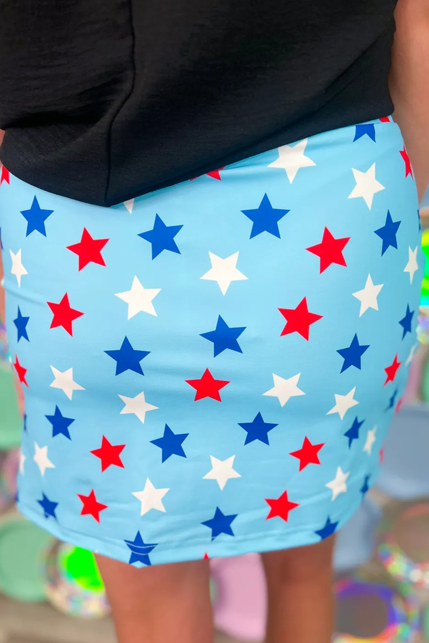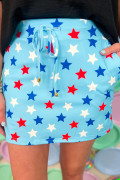 Sky Blue Patriotic Star Printed Beaded Drawstring Mini Skort