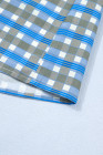 Sky Blue Plaid Long Sleeve Frilled Detail Half Button Blouse