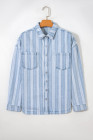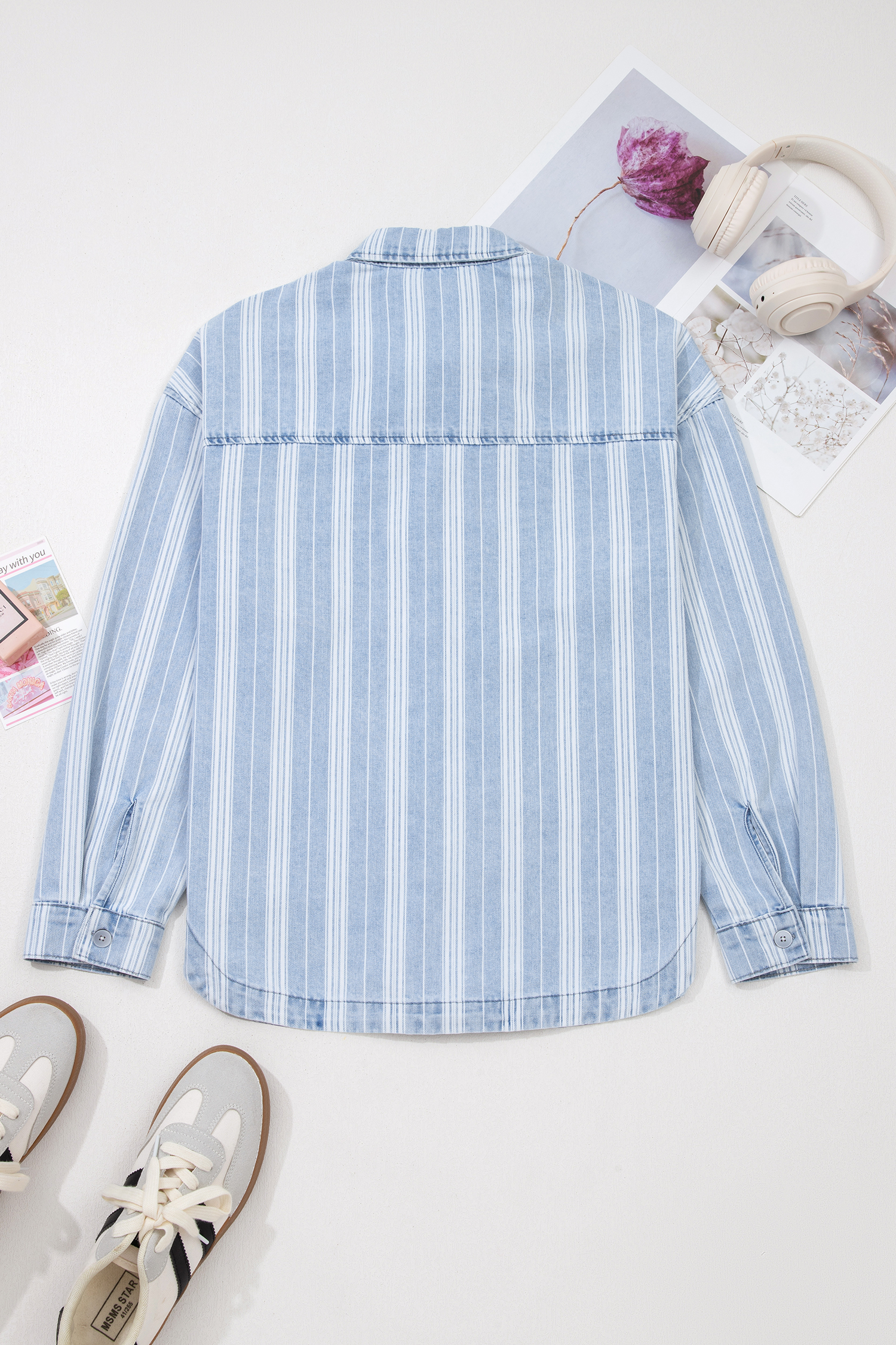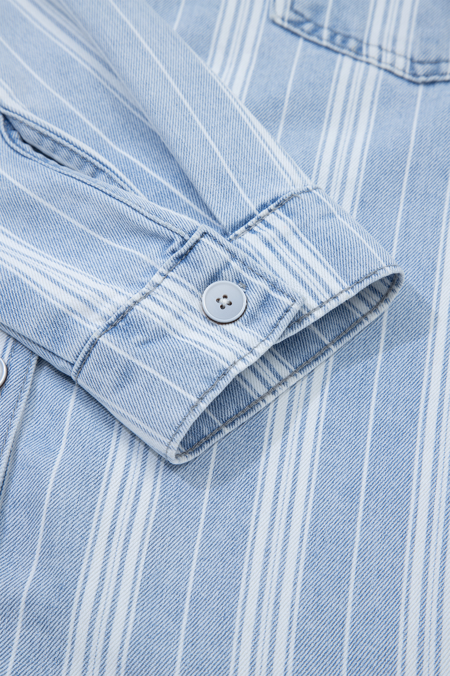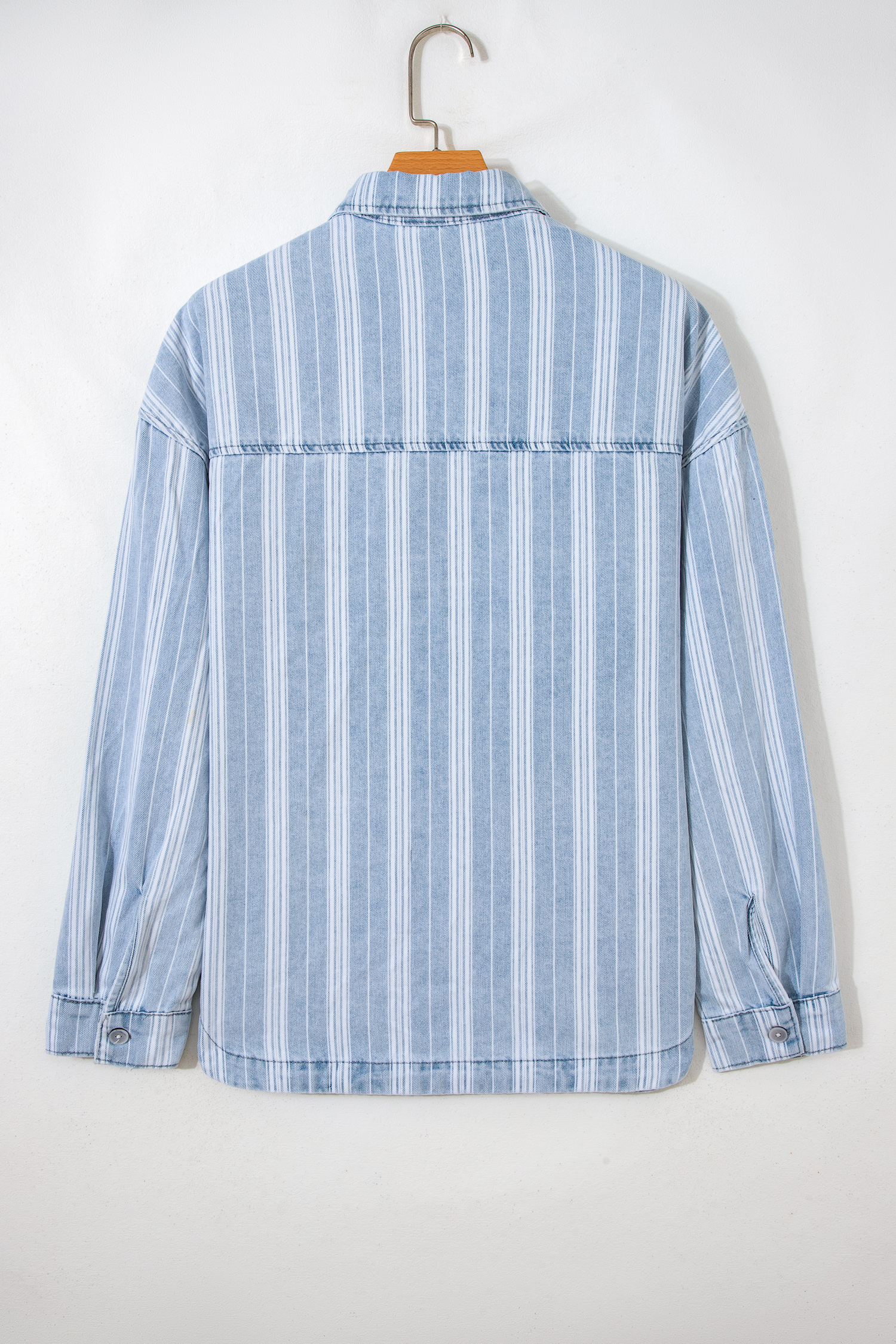 Sky Blue Stripe Boyfriend Chest Pocket Classic Denim Shacket