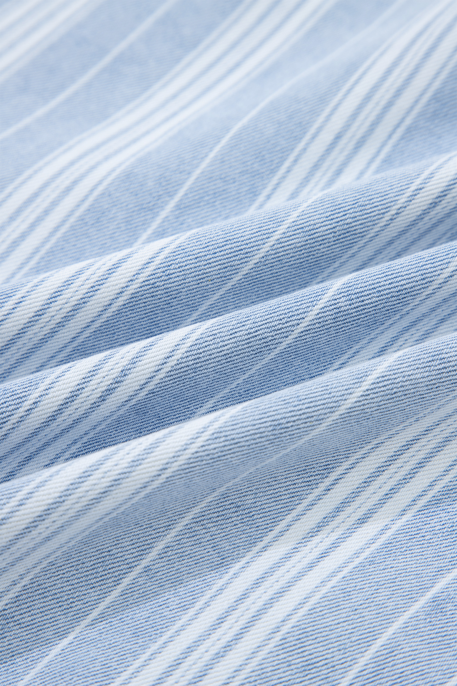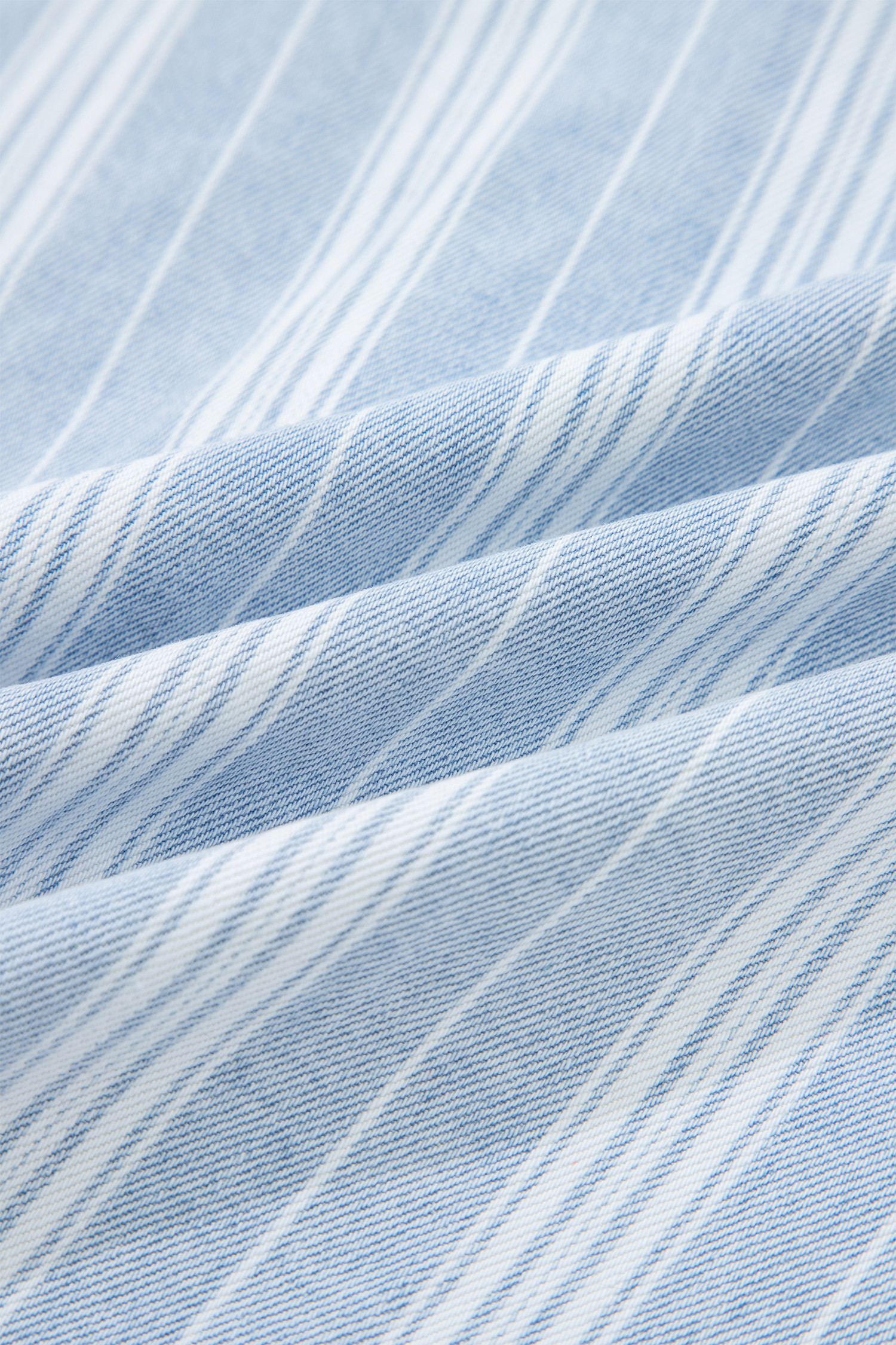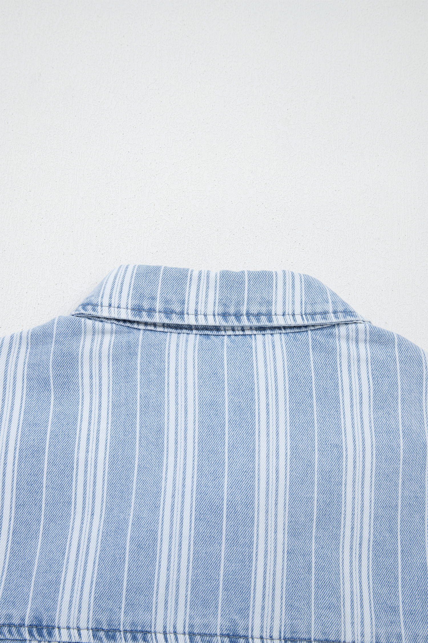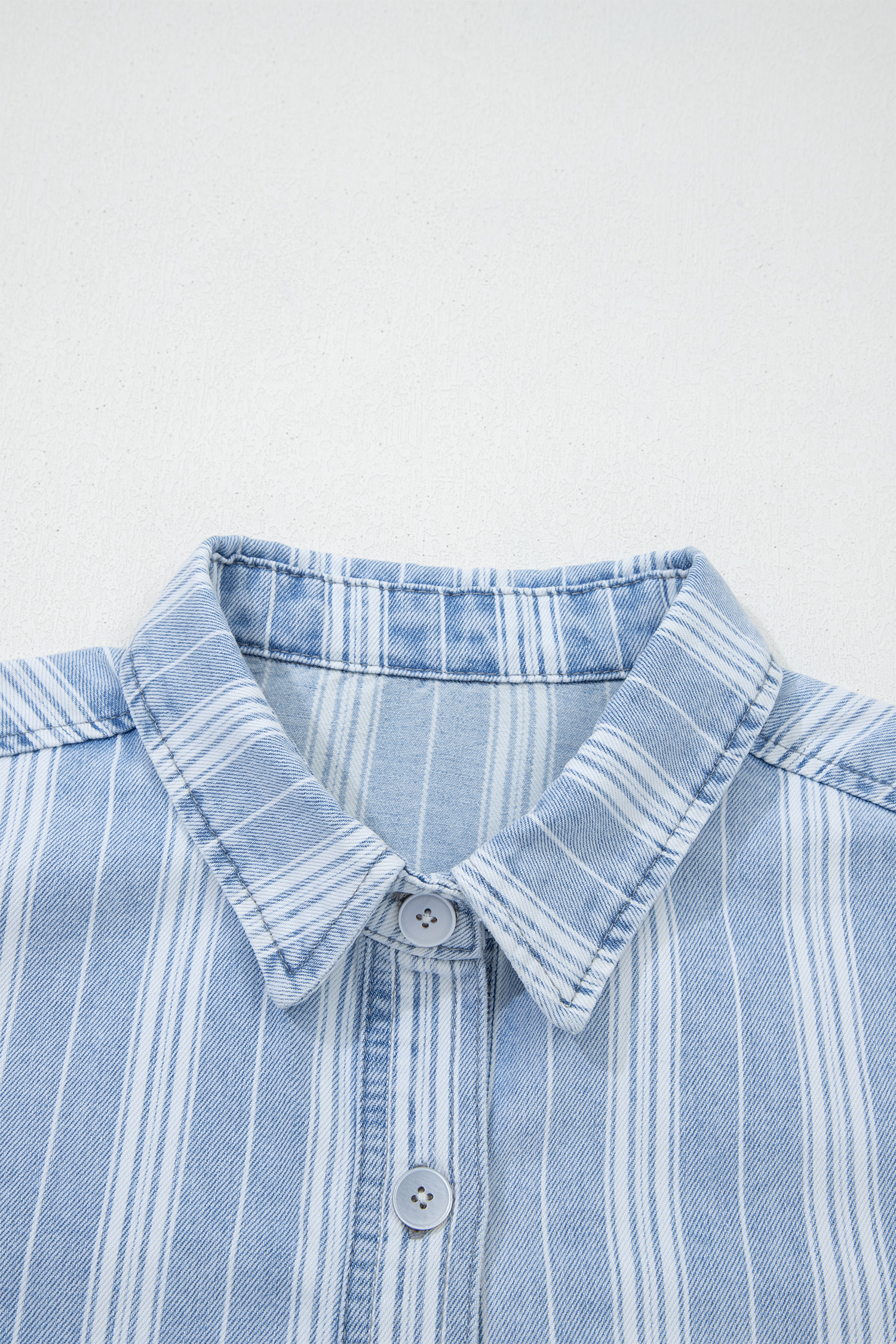 Sky Blue Stripe Boyfriend Chest Pocket Classic Denim Shacket