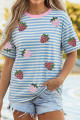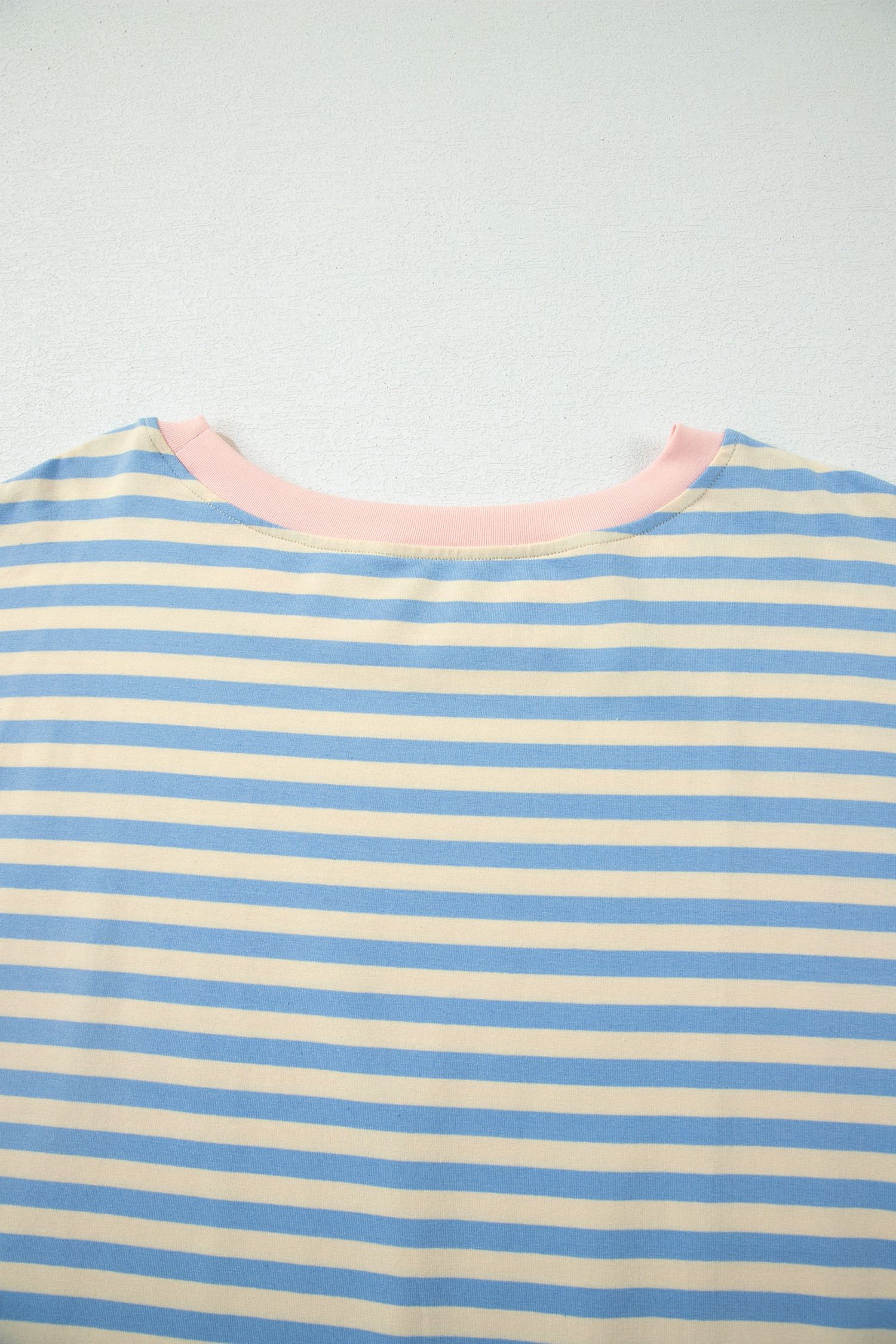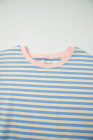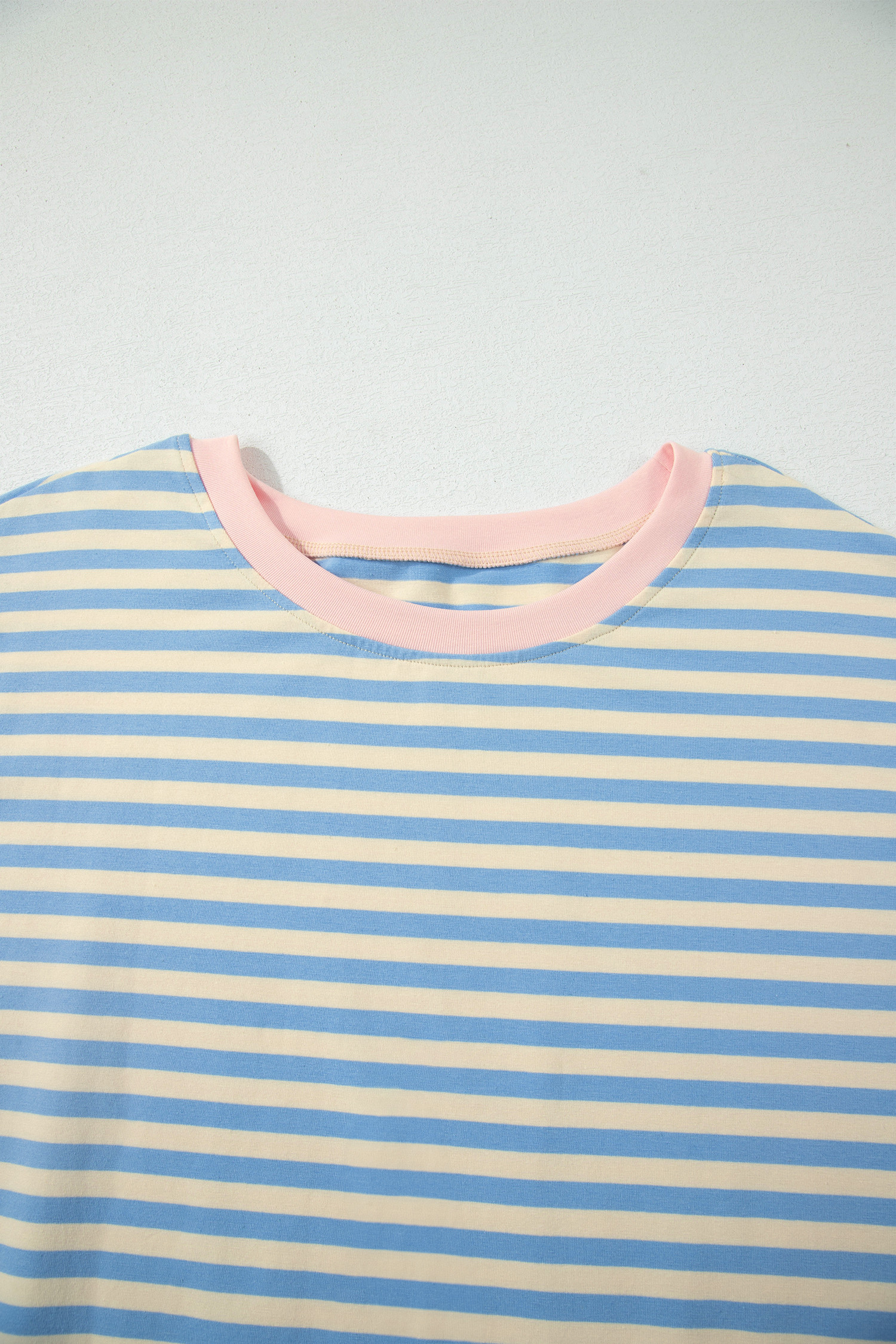 Sky Blue Stripe Plus Size Drop Shoulder Contrast Trim Round Neck Tee