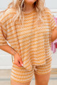 Raised Rib Loose Tee Drawstring Elastic Waist 2pcs Short Set