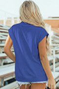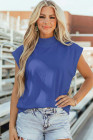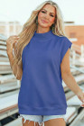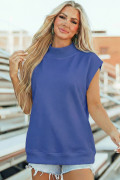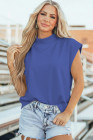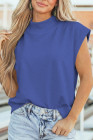 Sky Blue Solid Color High Neck Cap Sleeve Loose Top