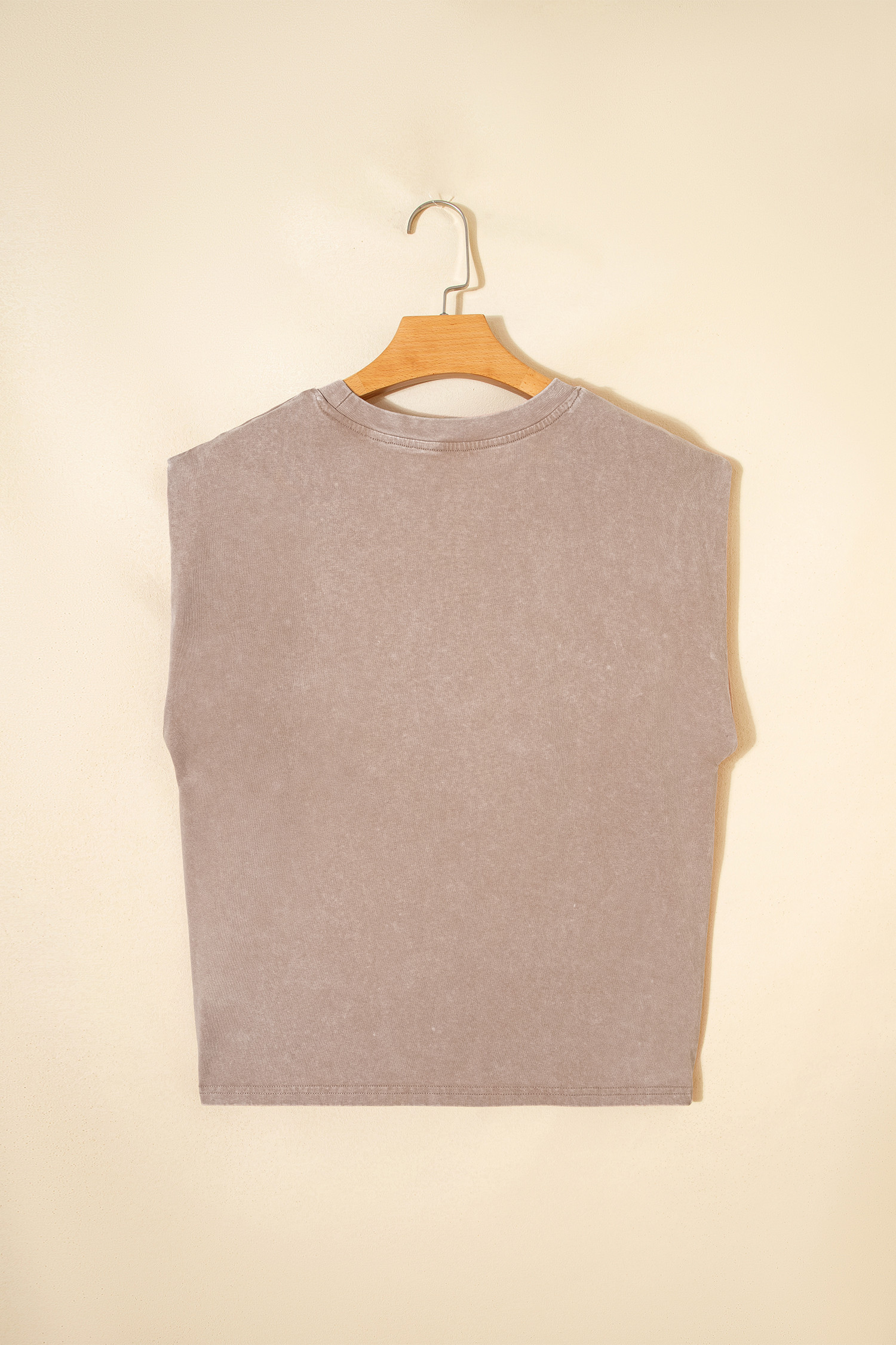 Smoke Gray Cowboy & Beer Western Graphic Mineral Wash Tank Top