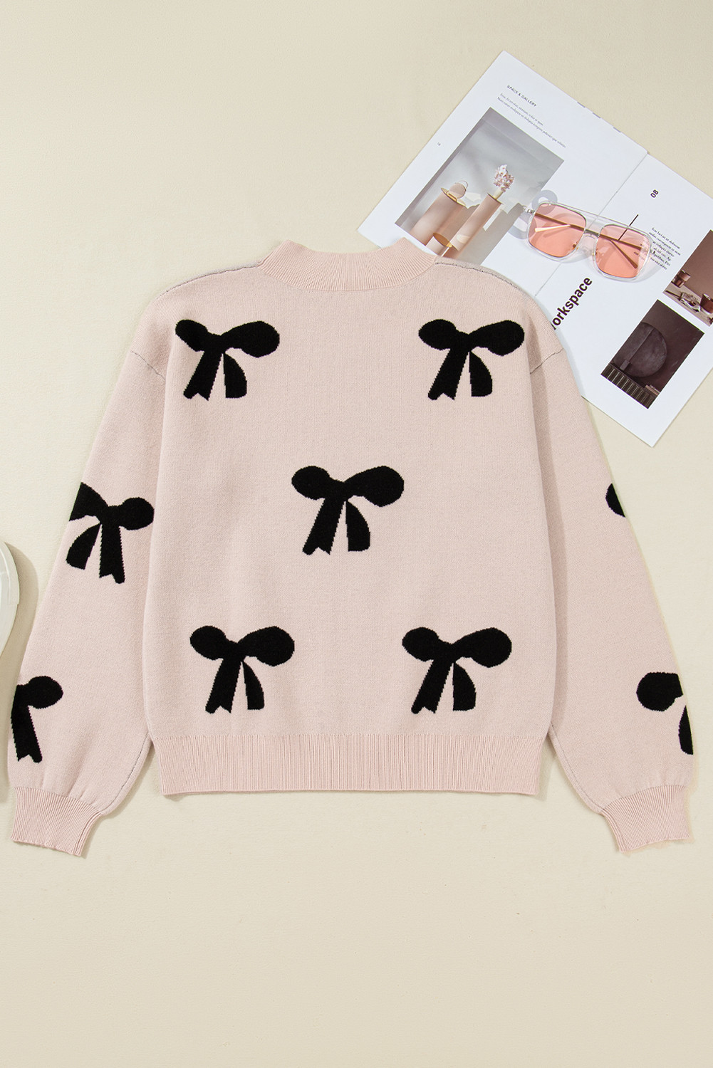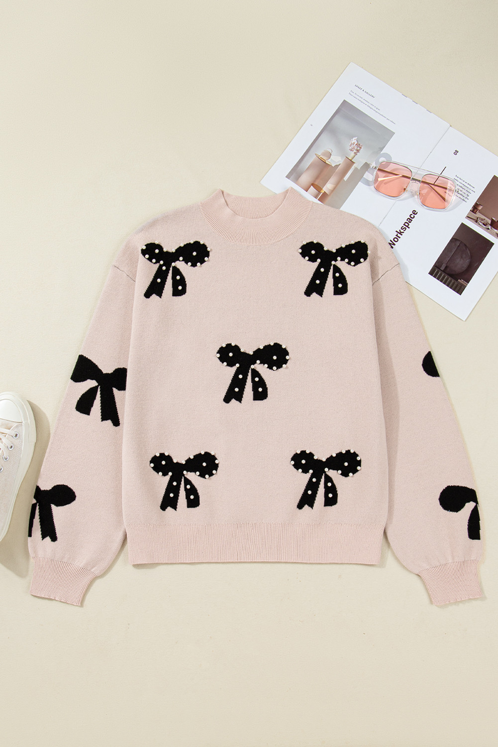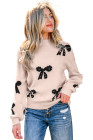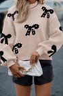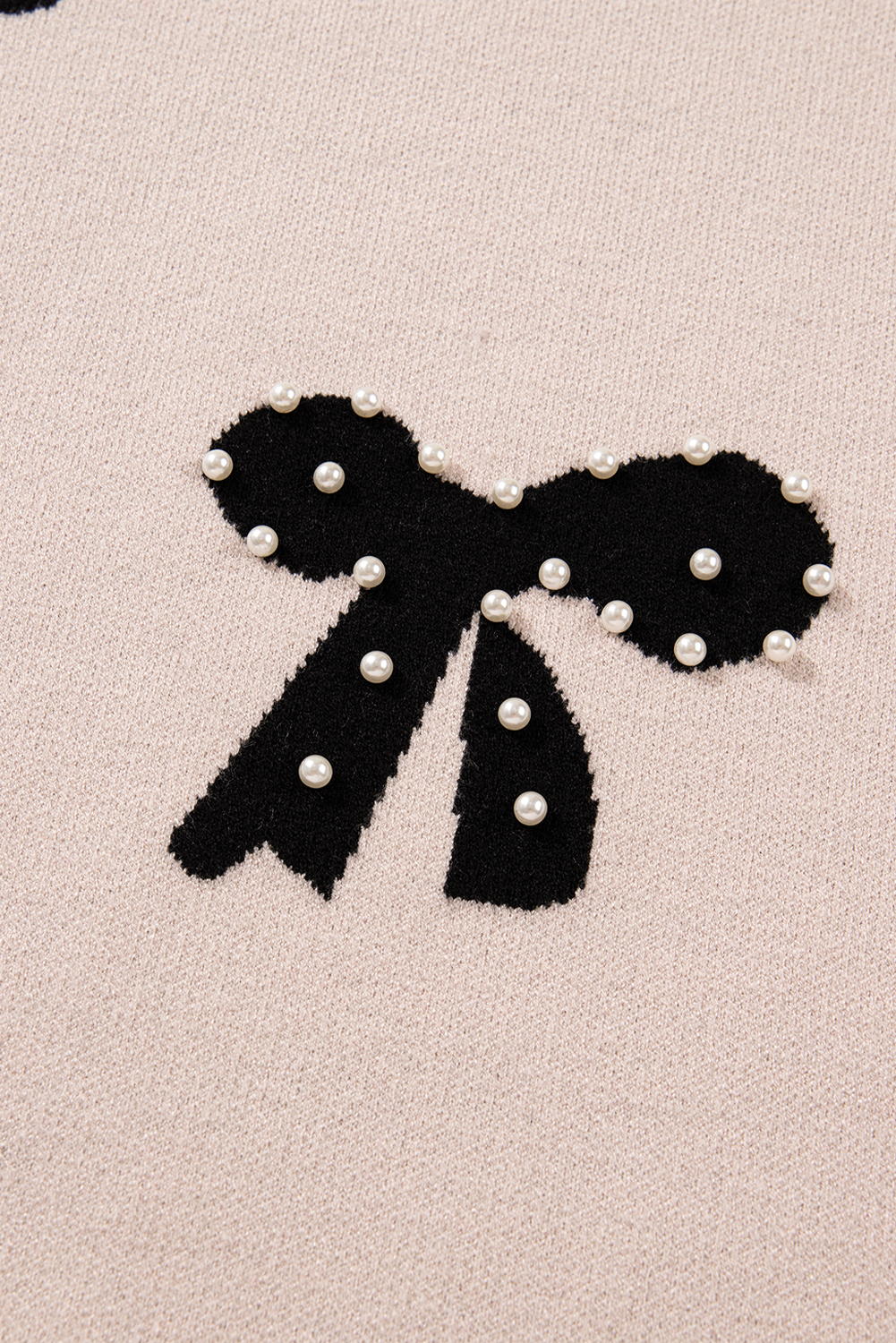 Smoke Gray Pearl Embellished Bow Pattern Loose Sweater
