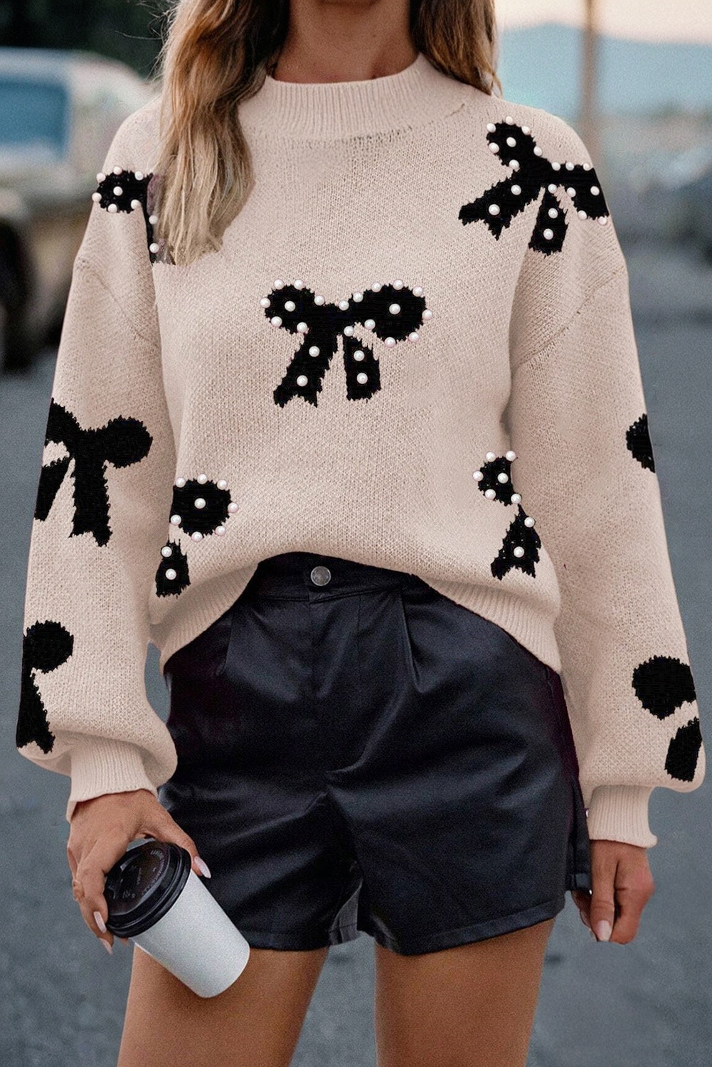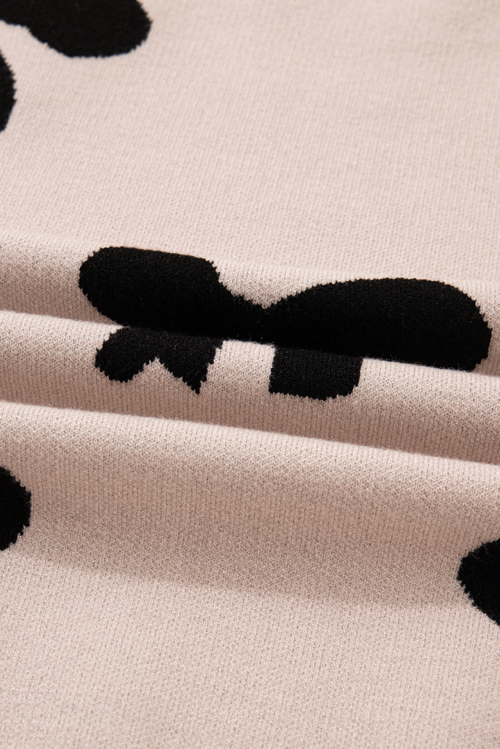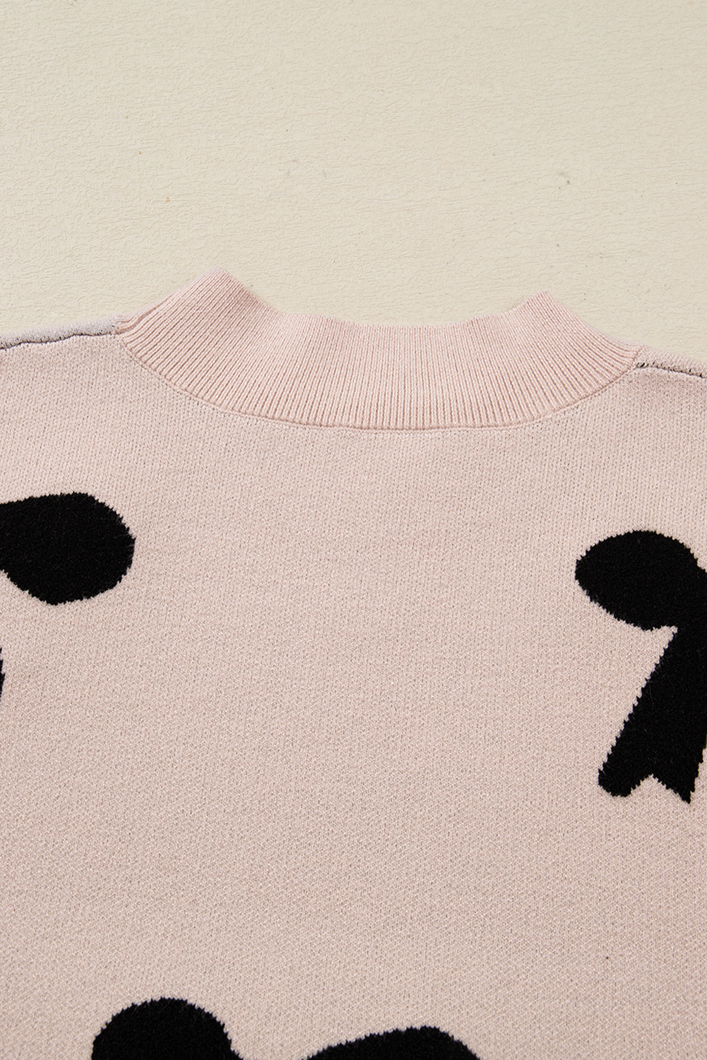 Smoke Gray Pearl Embellished Bow Pattern Loose Sweater