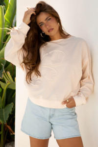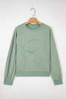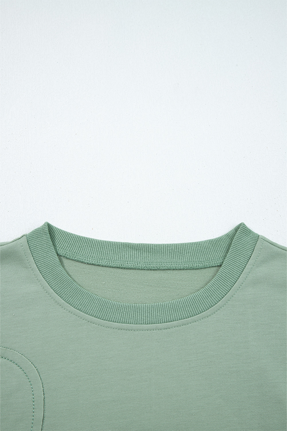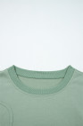 Smoke Green Raw Edge Flower Patch Drop Shoulder Casual Top