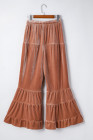Straw Yellow Mineral Wash Lace-up High Waist Tiered Bell Bottom Pants