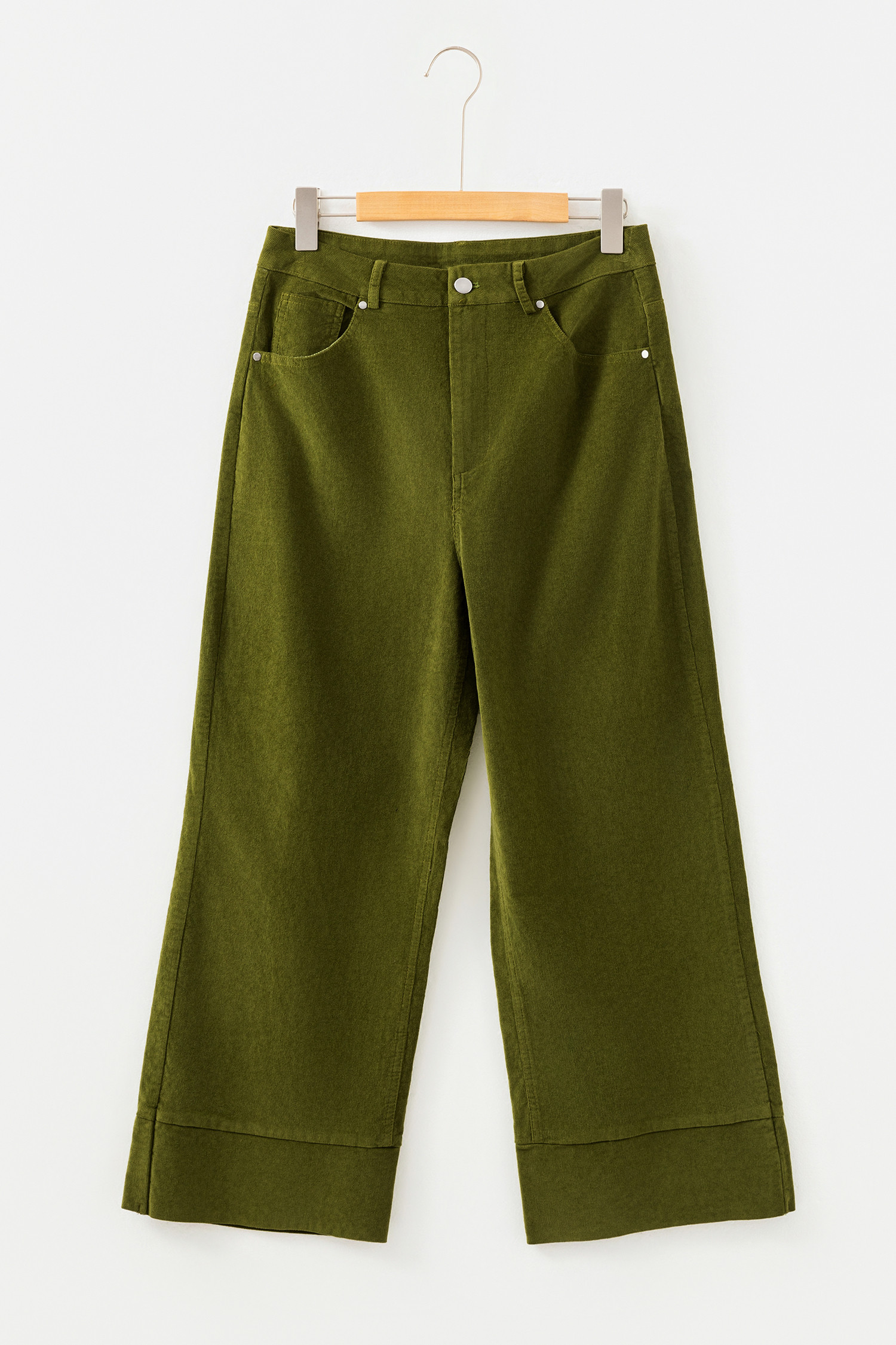 Vineyard Green Corduroy Solid Color High Waist Wide Leg Pants