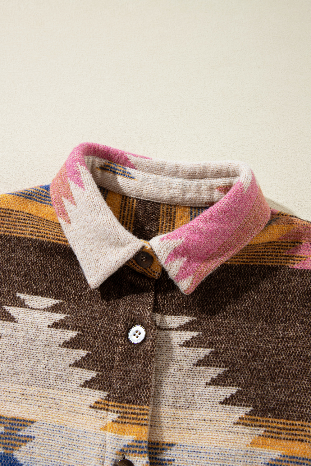 | Pattern | geometric,Western Print | Neckline | turn-down collar |