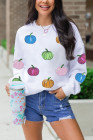 White Colorful Pumpkin Sequin Patched Drop Shoulder Sweatshirt