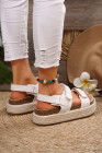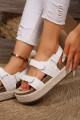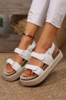 White Double Velcro Woven Platform Sandals