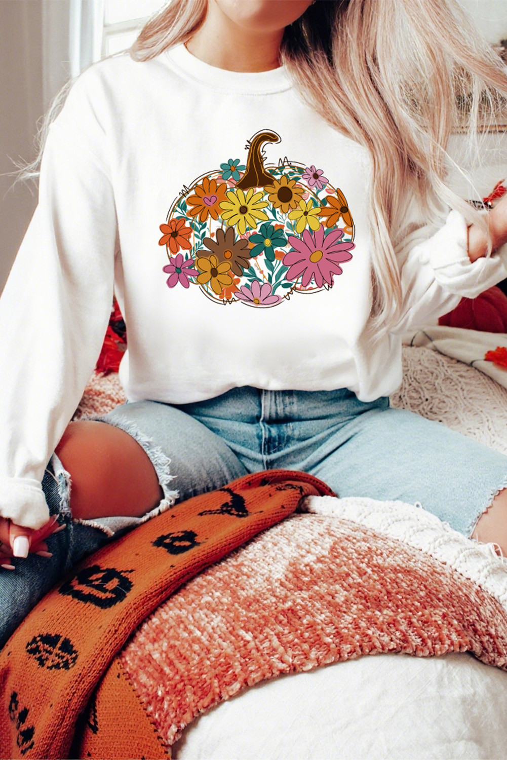 White Floral Pumpkin Custom Graphic Sweatshirt