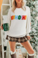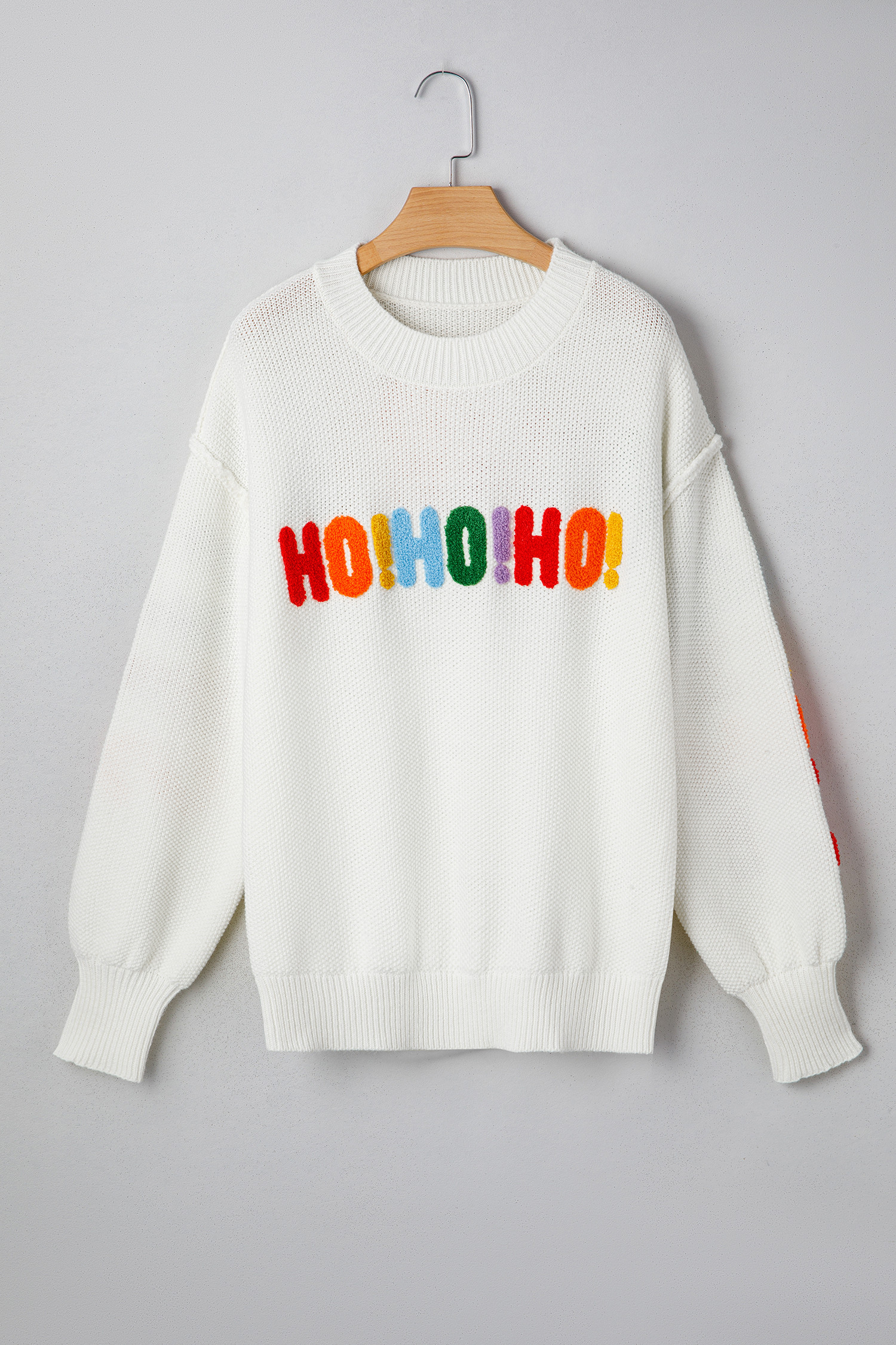 White HOHOHO MERRY CHRISTMAS Chenille Graphic Drop Shoulder Holiday Sweater