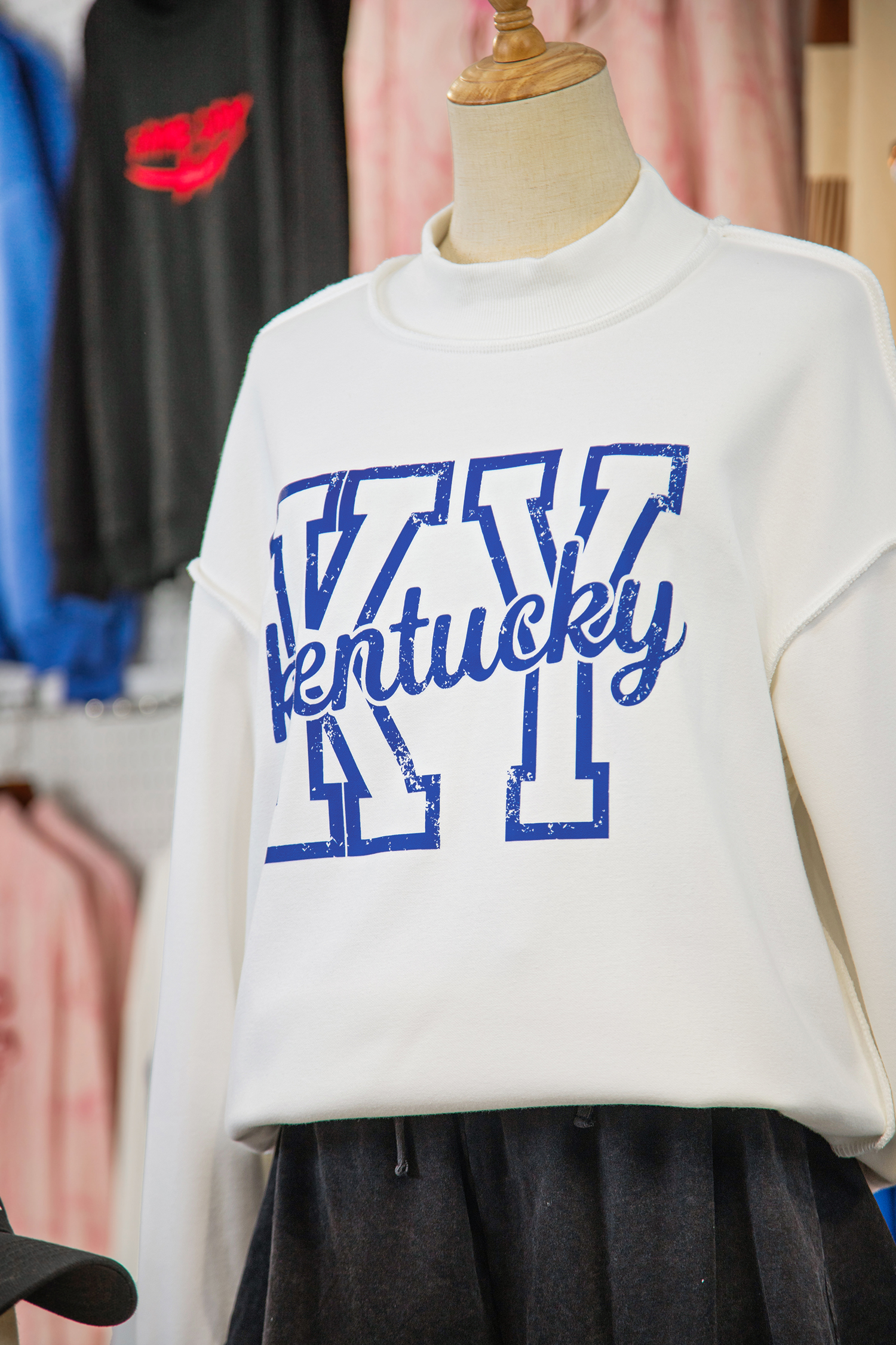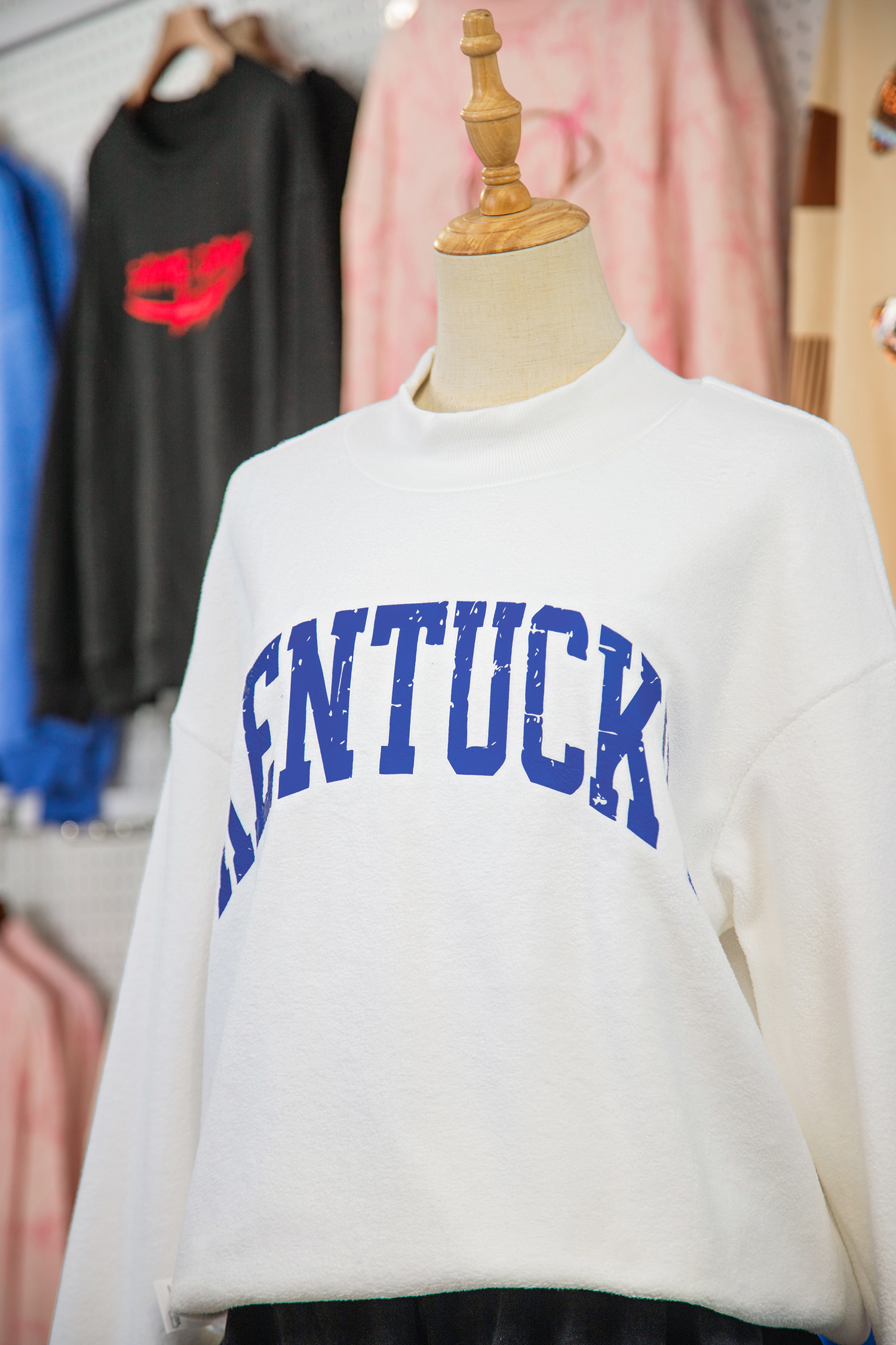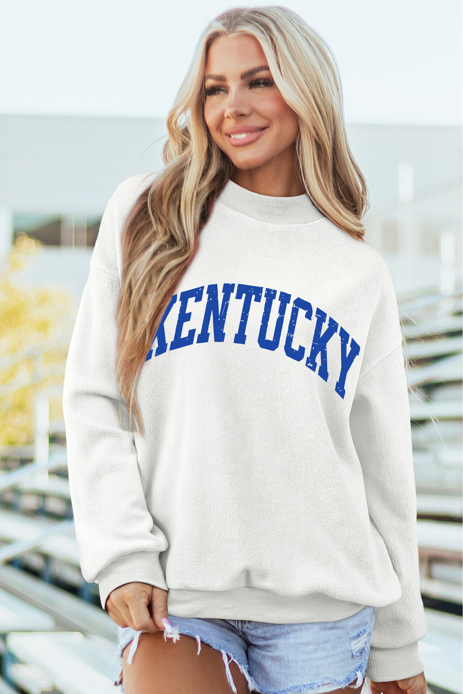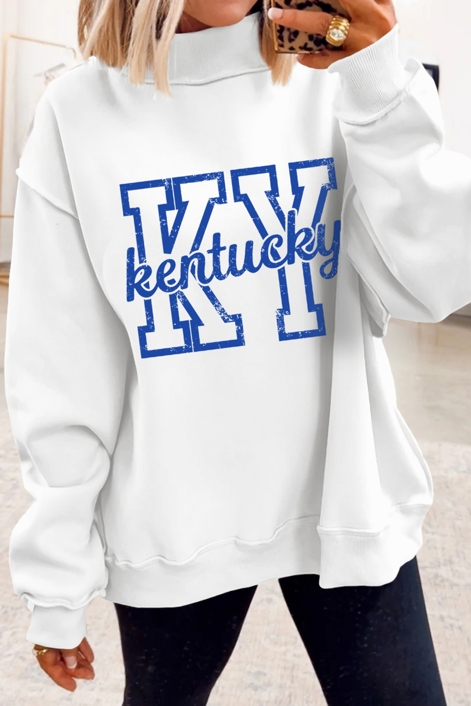 White Kentucky Graphic Mock Neck Reversible Sweatshirt