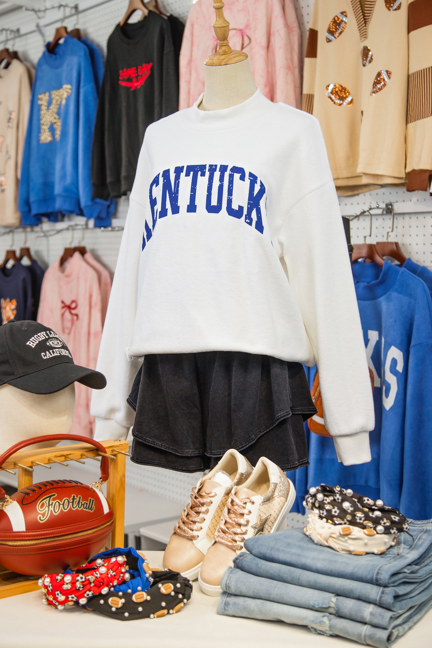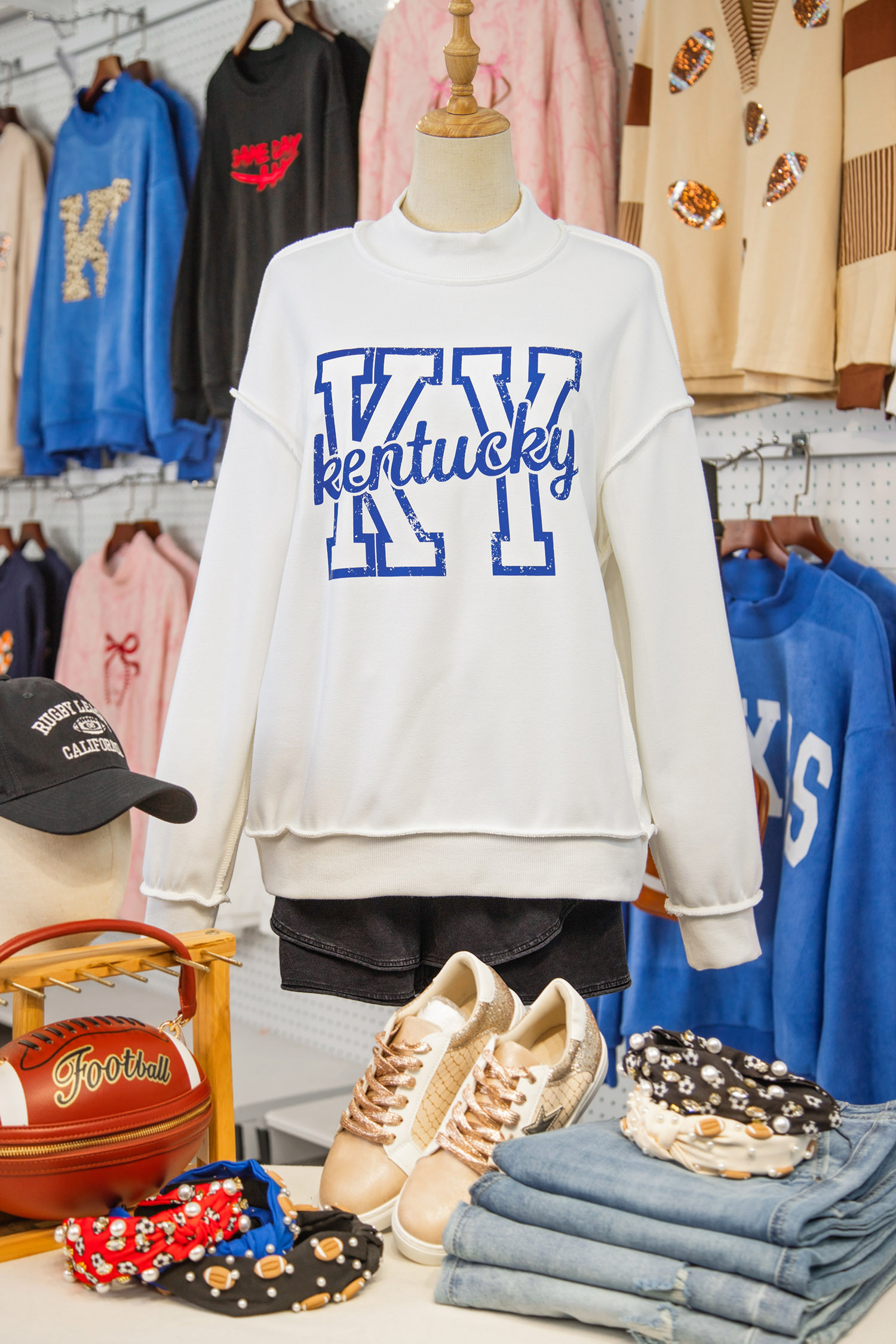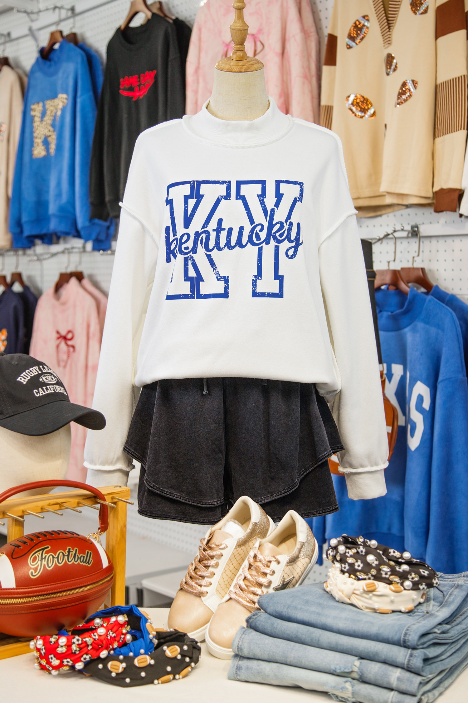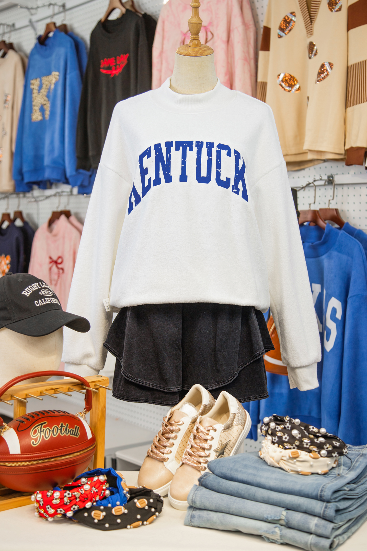 White Kentucky Graphic Mock Neck Reversible Sweatshirt