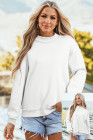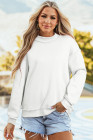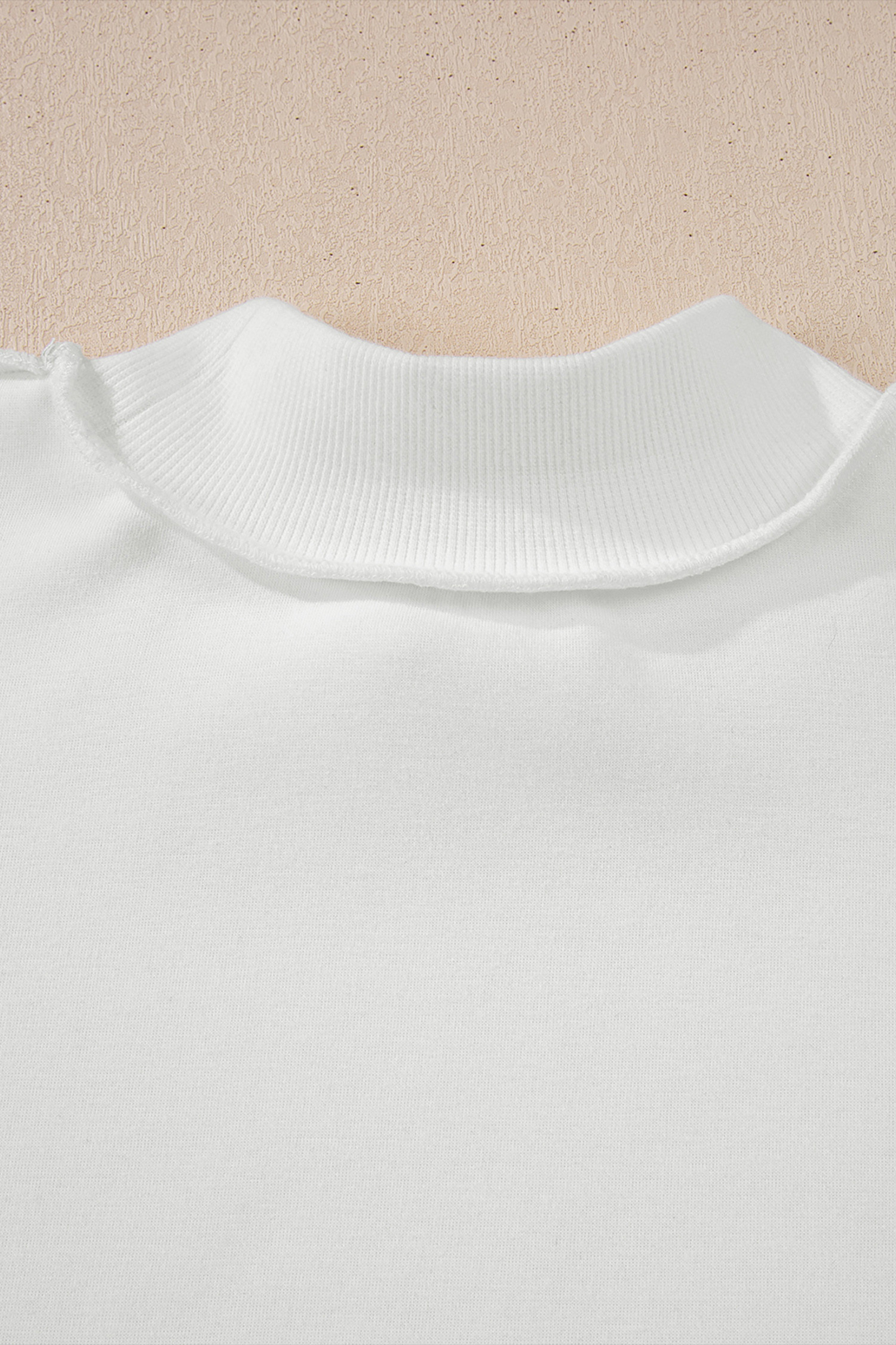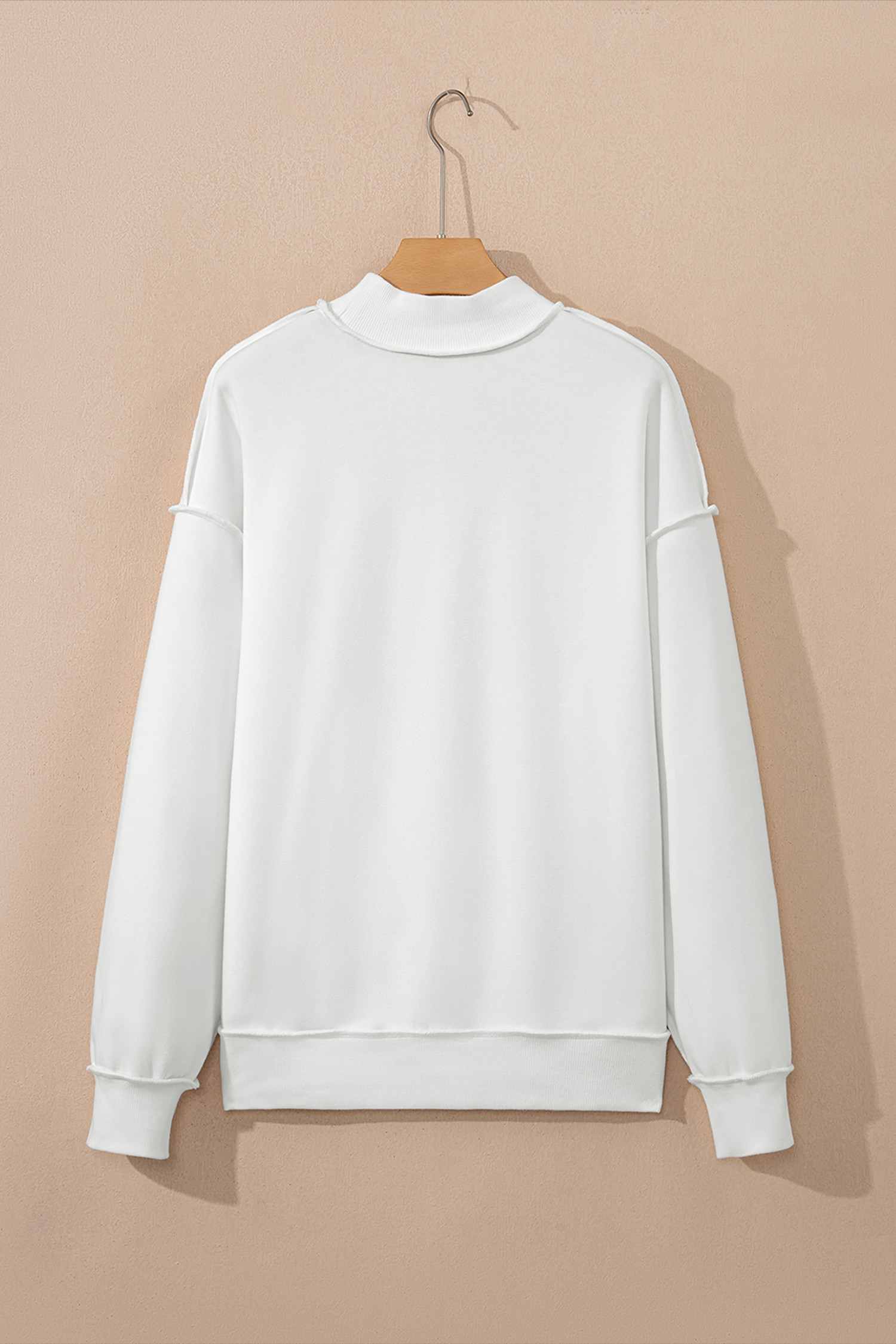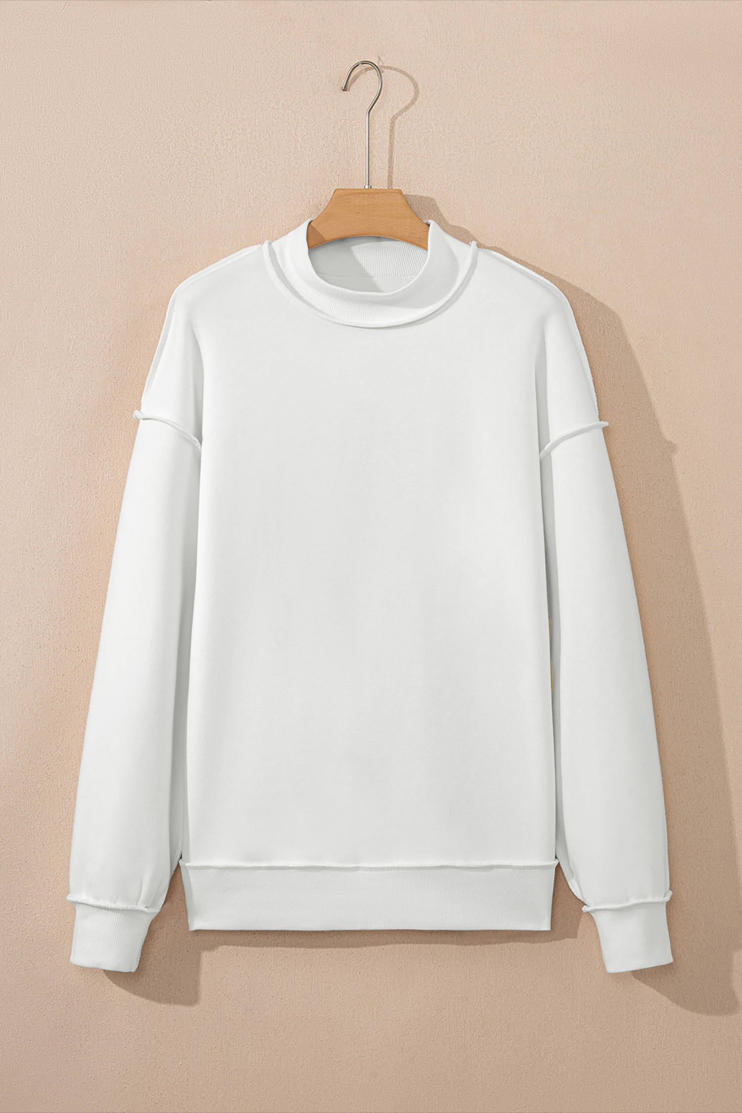 White Oversize Drop Shoulder Reversible Mock Neck Sweatshirt