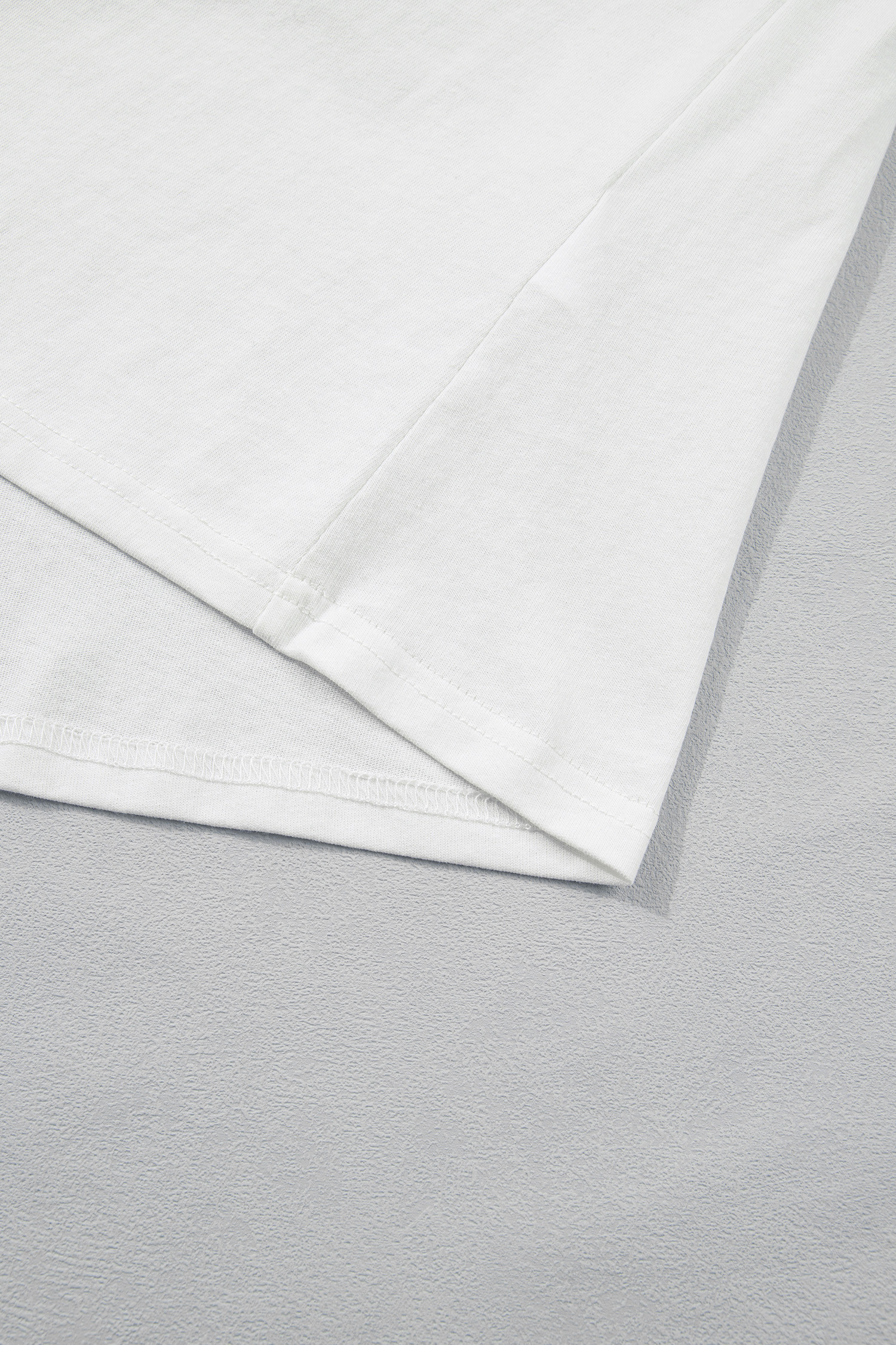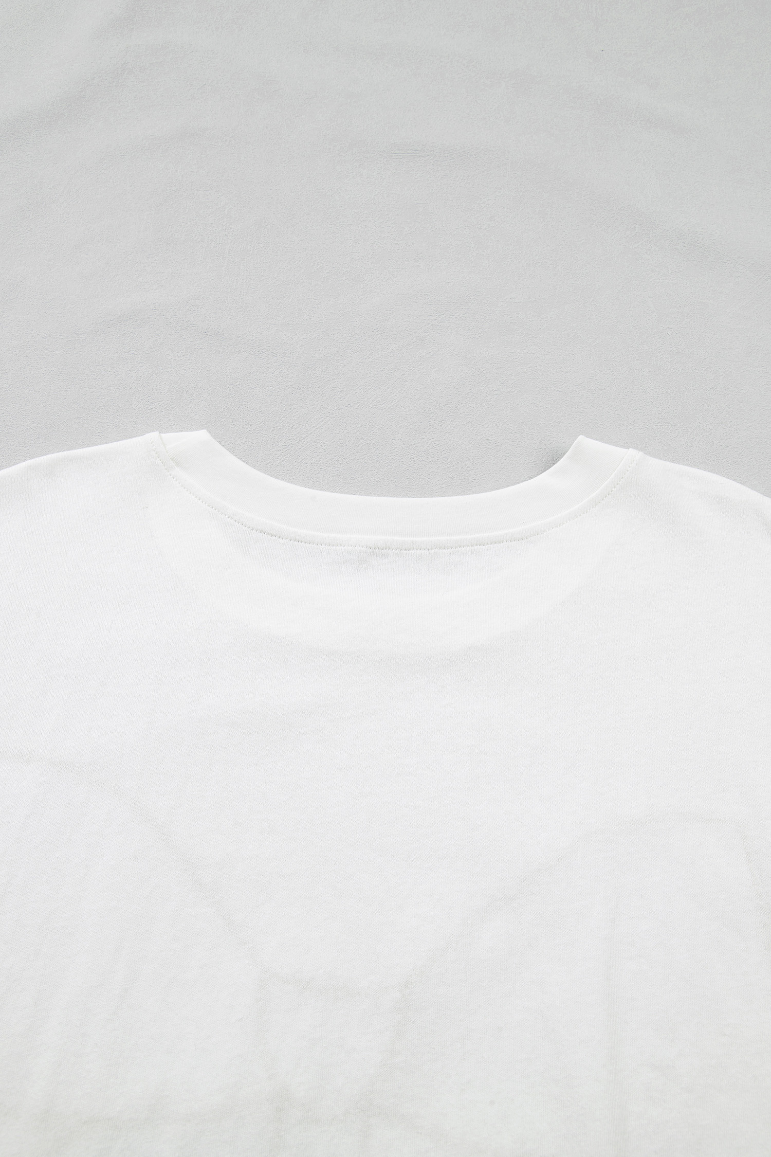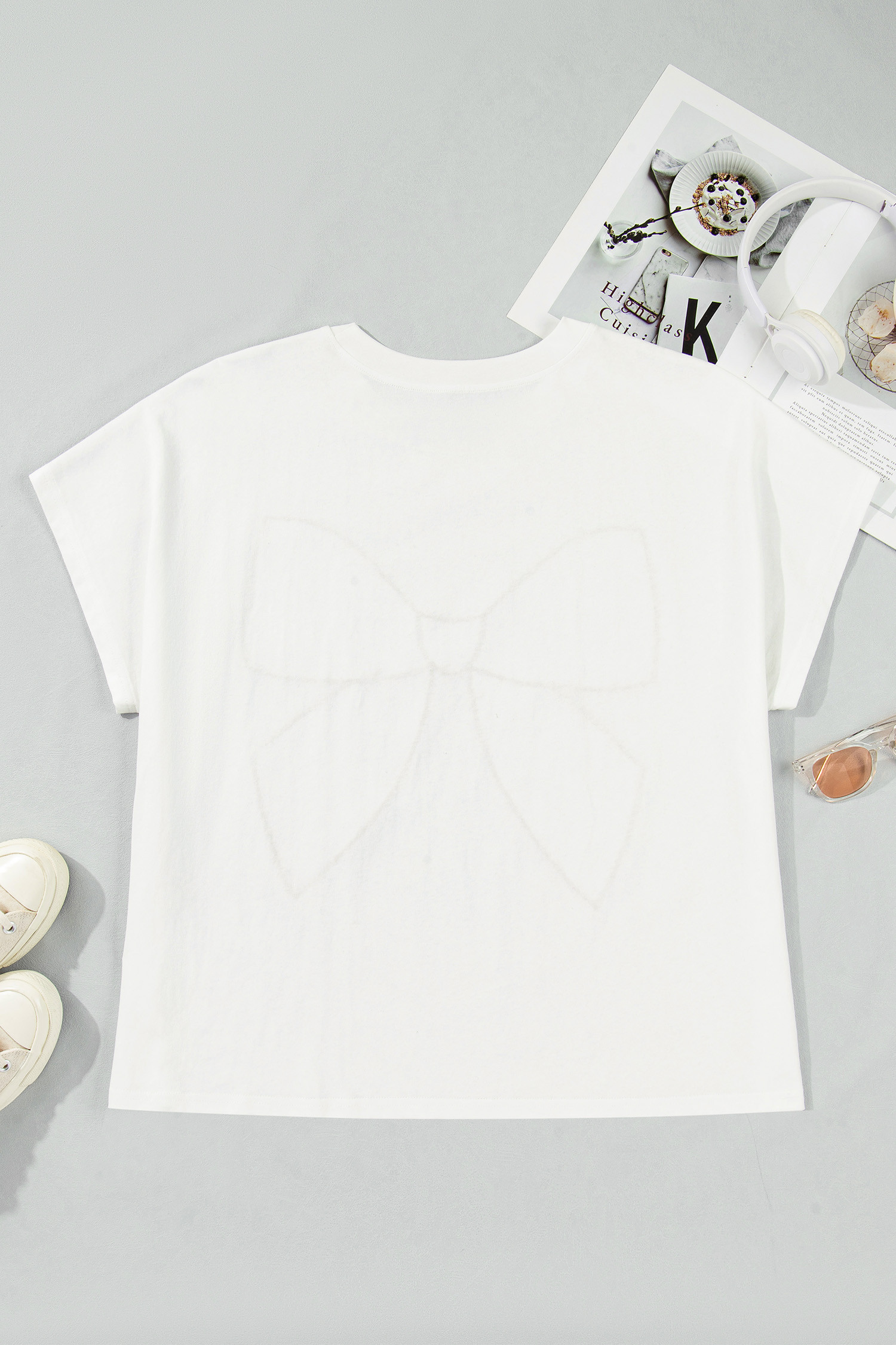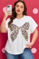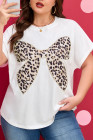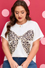 White Plus Size Leopard Bow Embroidered Patch Casual T Shirt