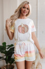 White Pumpkin Graphic Rainbow Rush Shift Tee and Short Loungewear