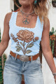 White Retro Floral Print Scalloped Square Neck Knit Sweater Vest