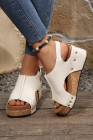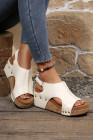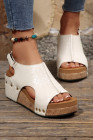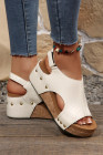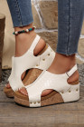 White Retro PU Leather Quilted Texture Studded Platform Sandals