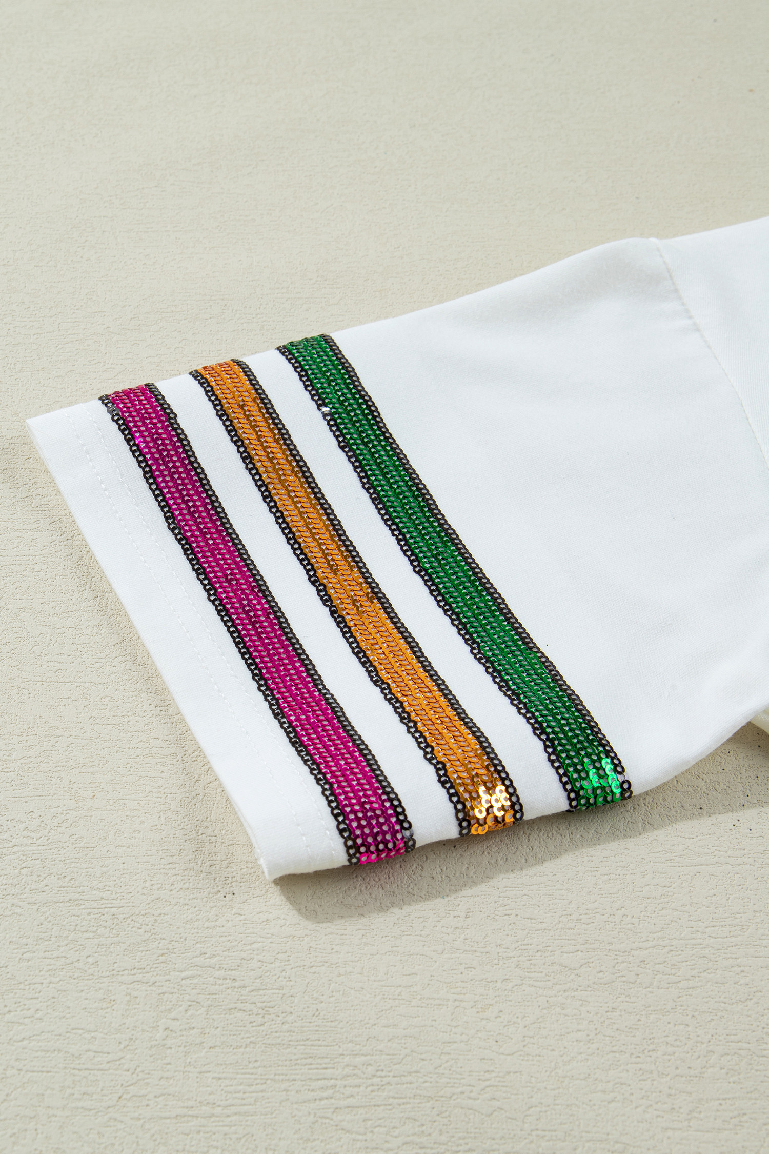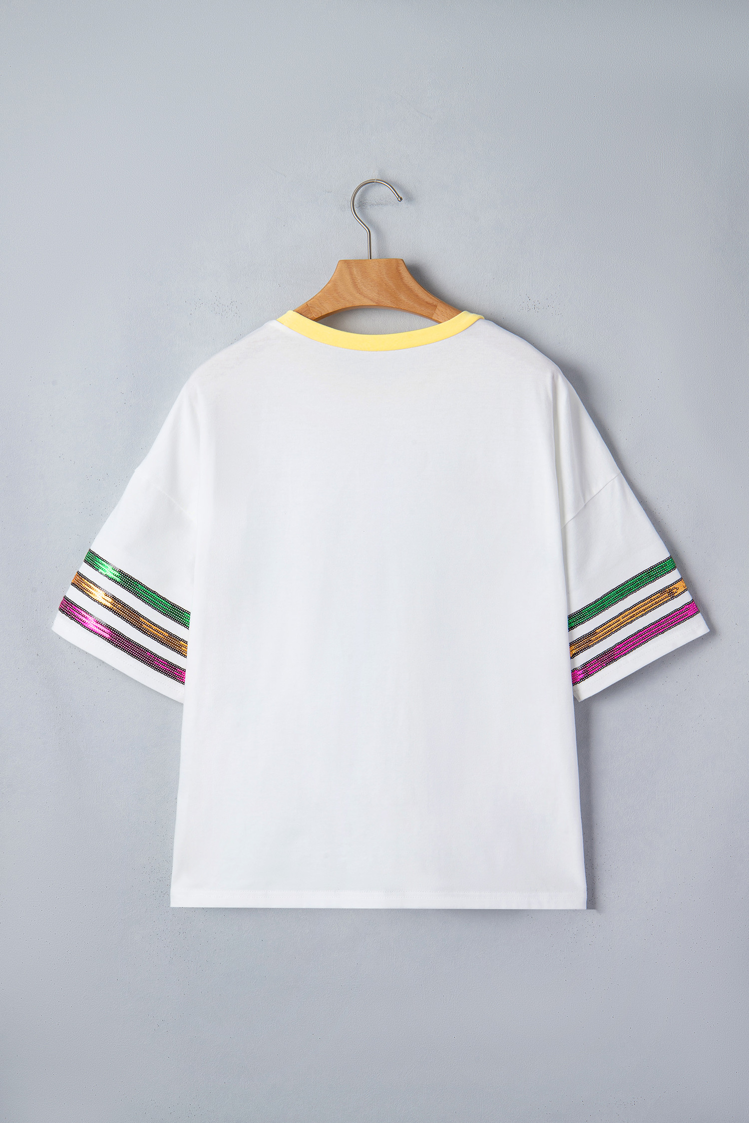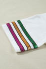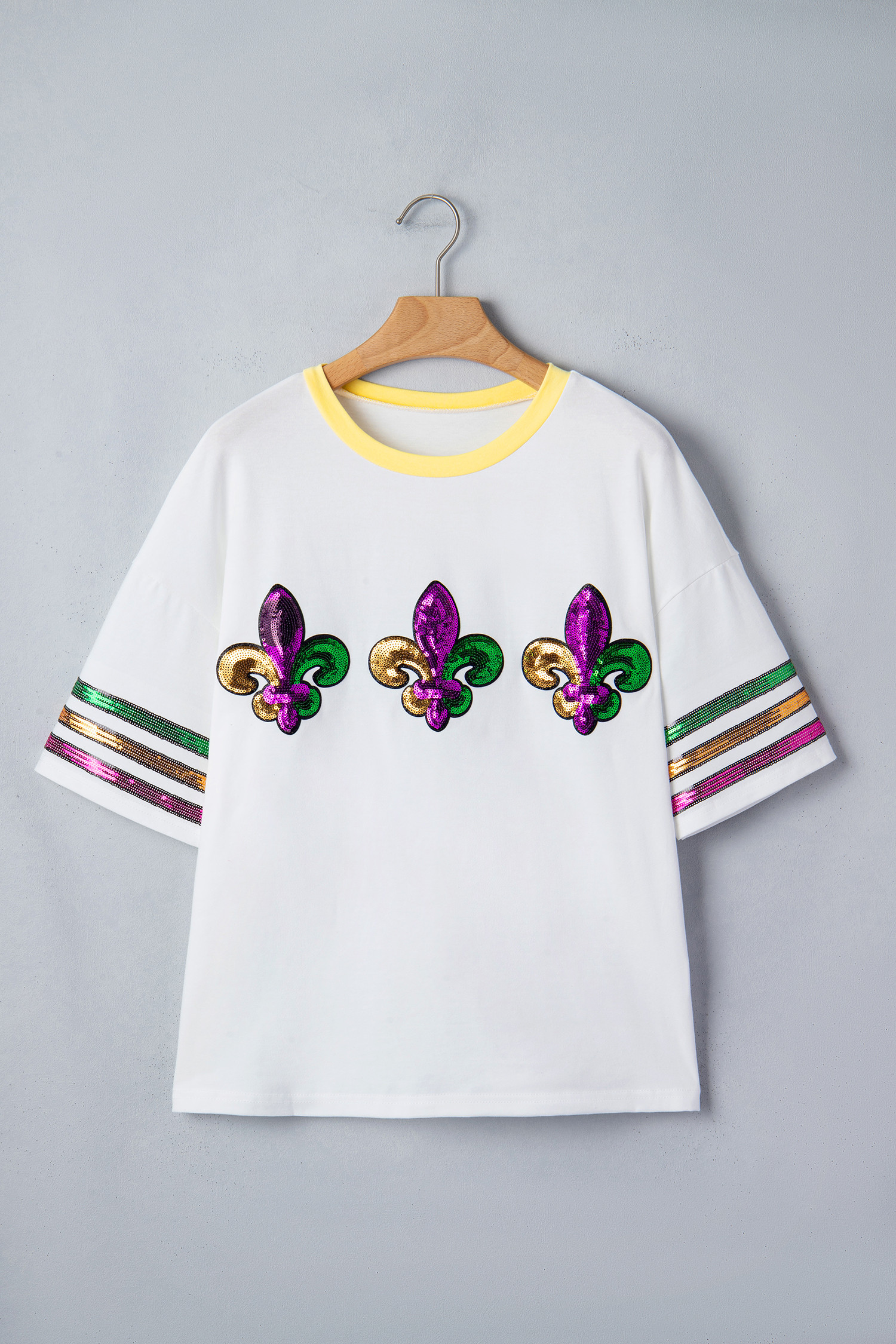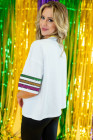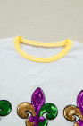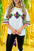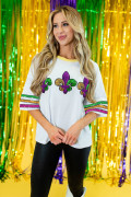 White Sequin Fleur de Lis Mardi Gras Varsity T Shirt