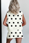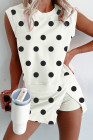 White Ribbed Trim Polka Dot Print Tank Split Mini Skort 2pcs Set