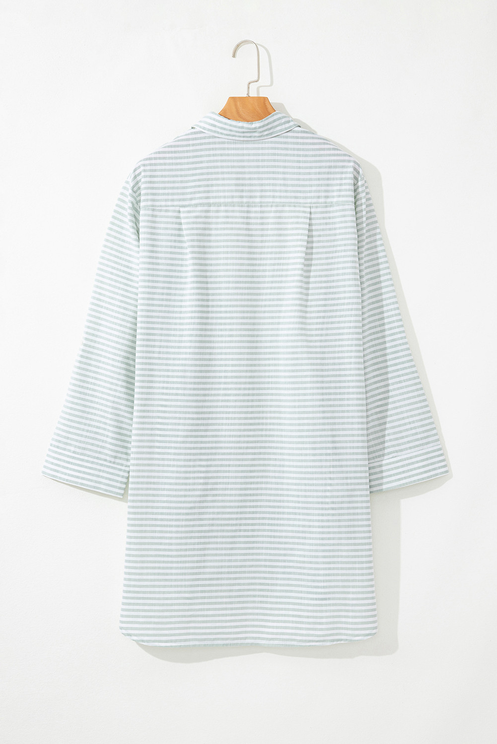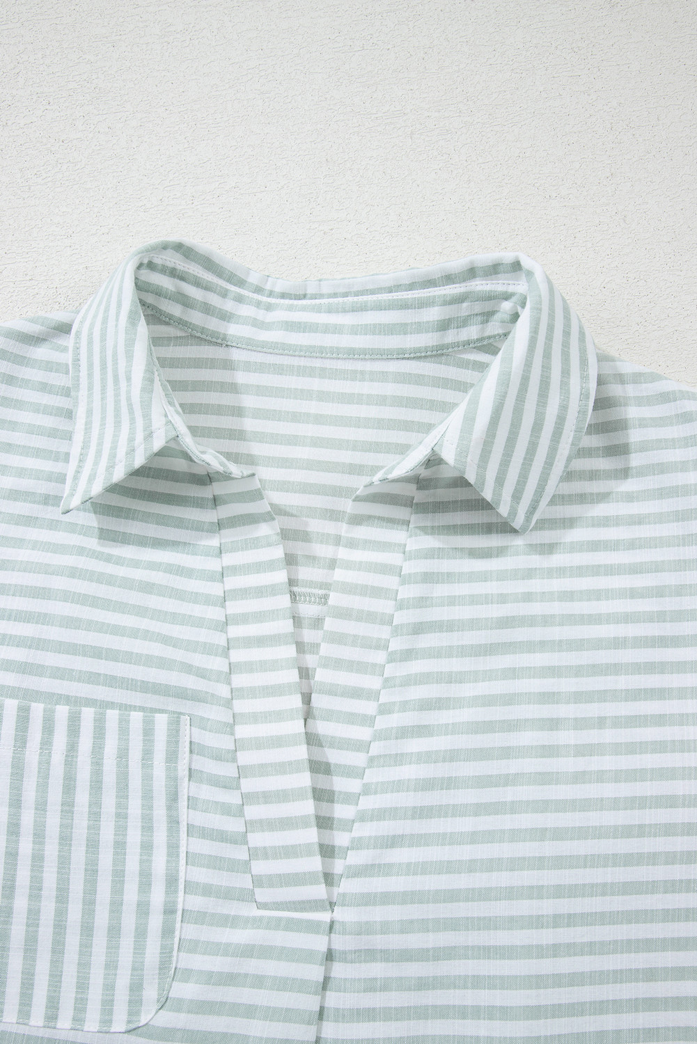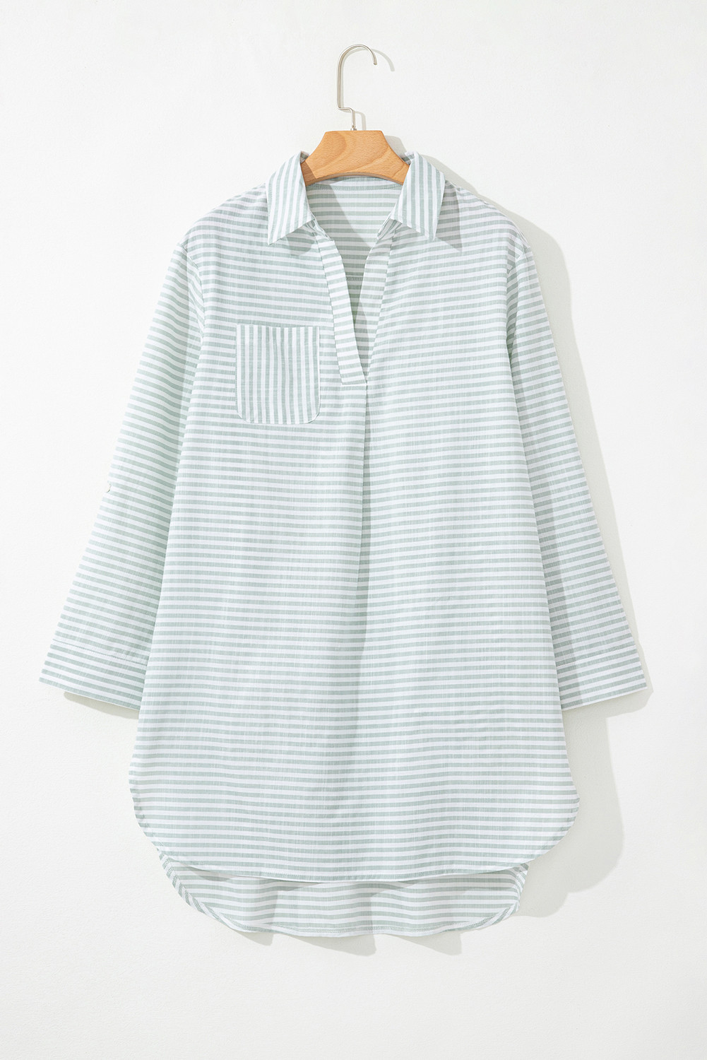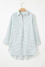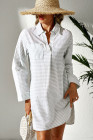 White Stripe Collared V Neck Chest Pocket Long Sleeve Beach Cover up