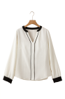 White Textured Colorblock V Neck Elegant Blouse