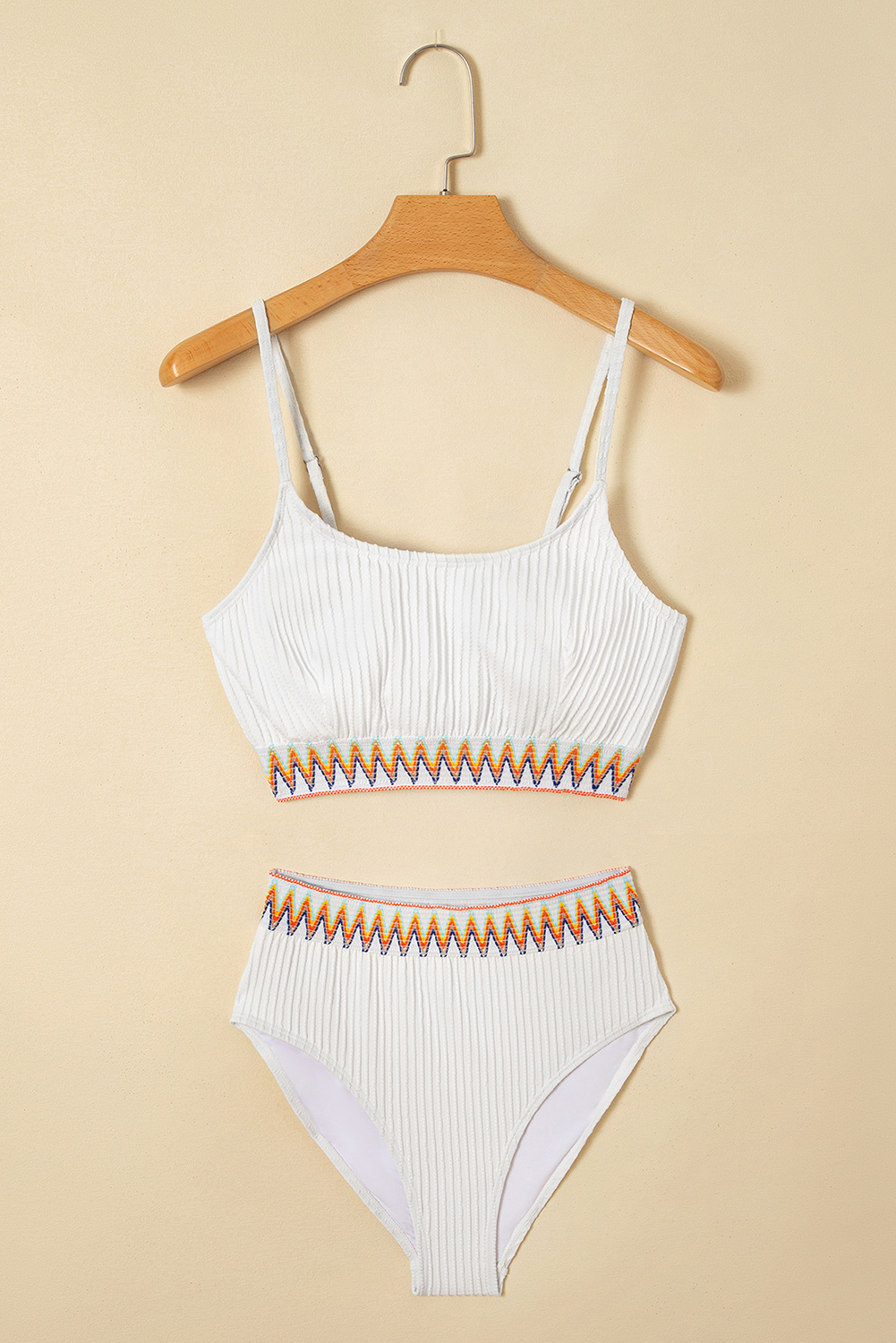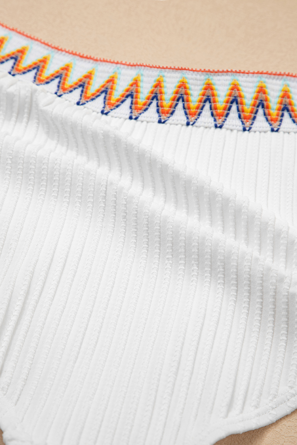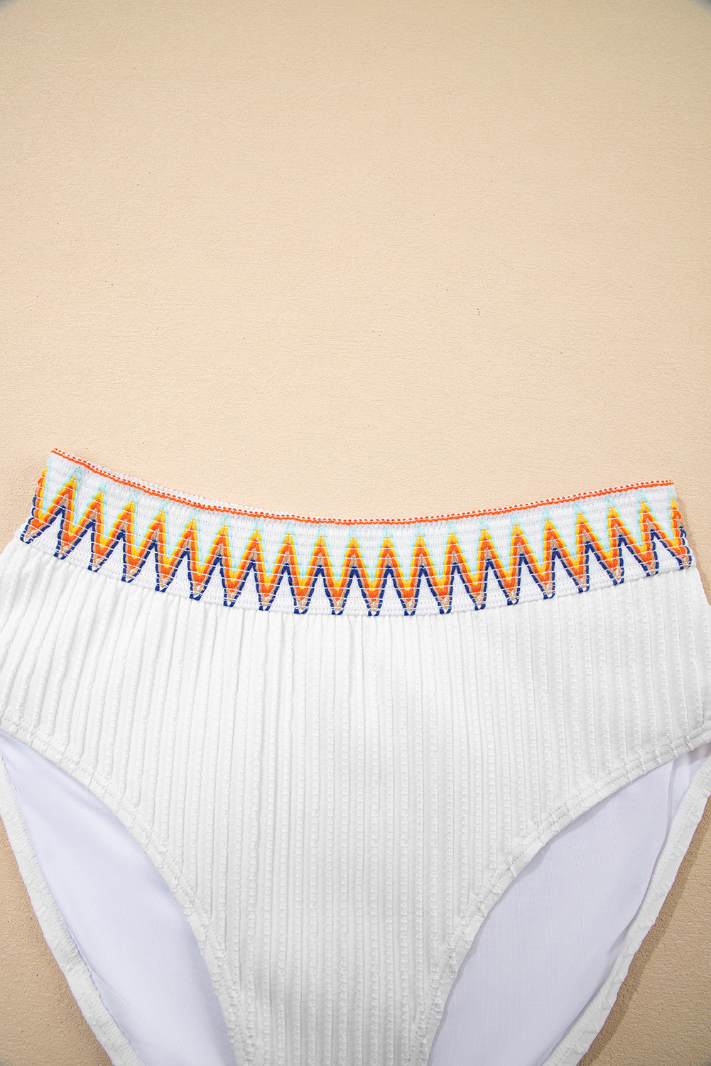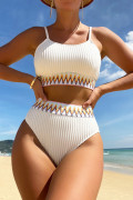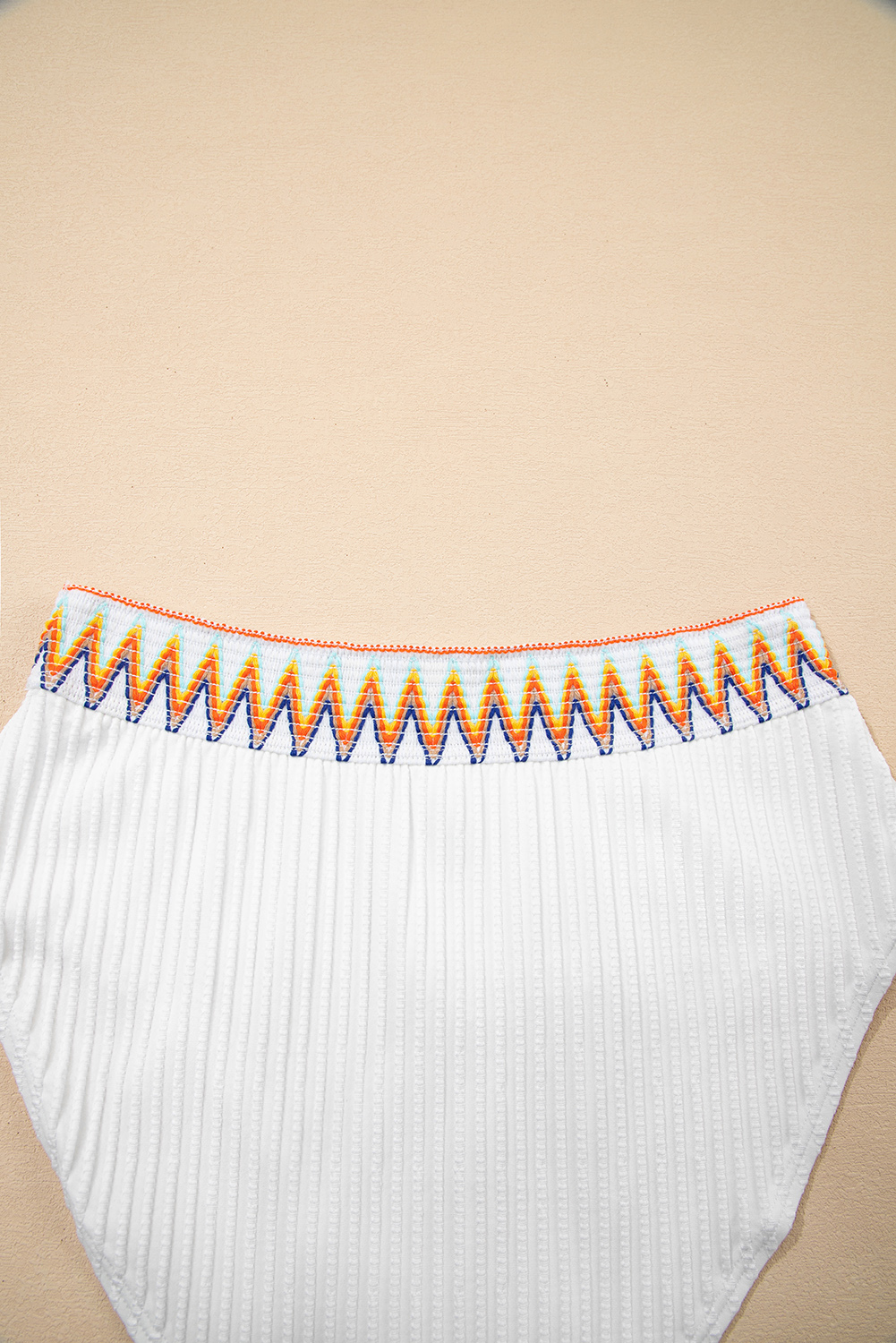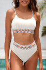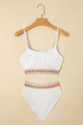 White Textured Contrast Banding Bikini High Waist 2pcs Swimsuit