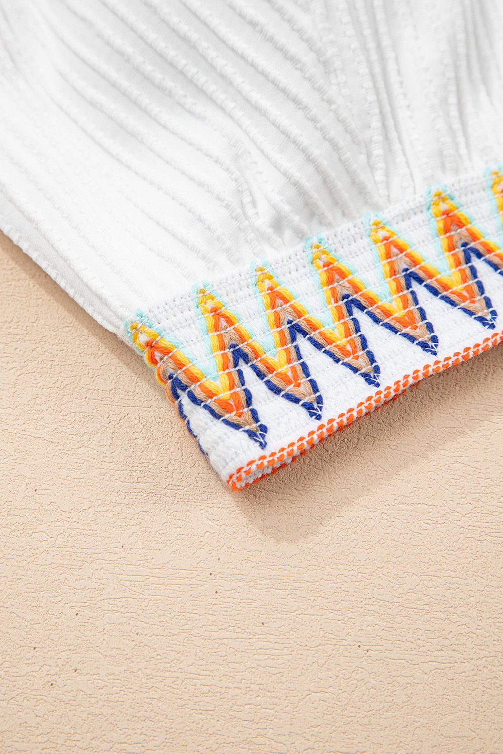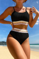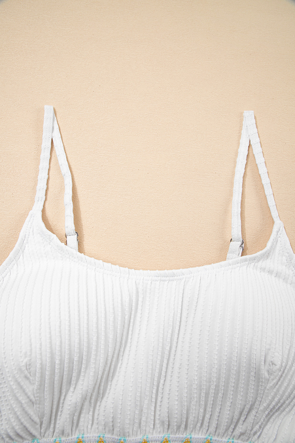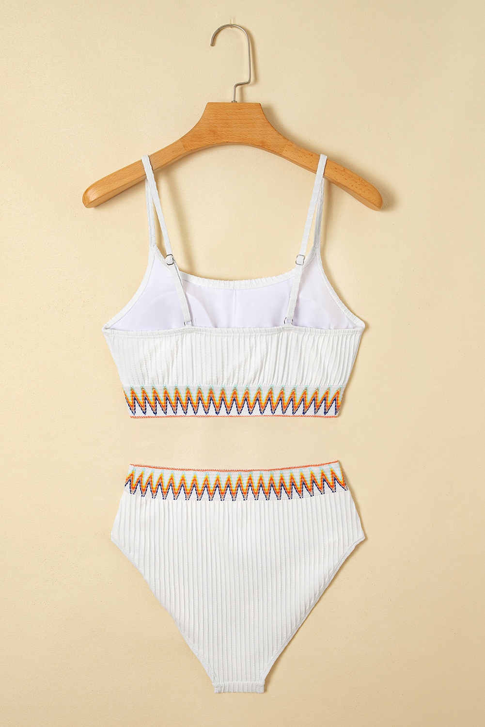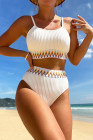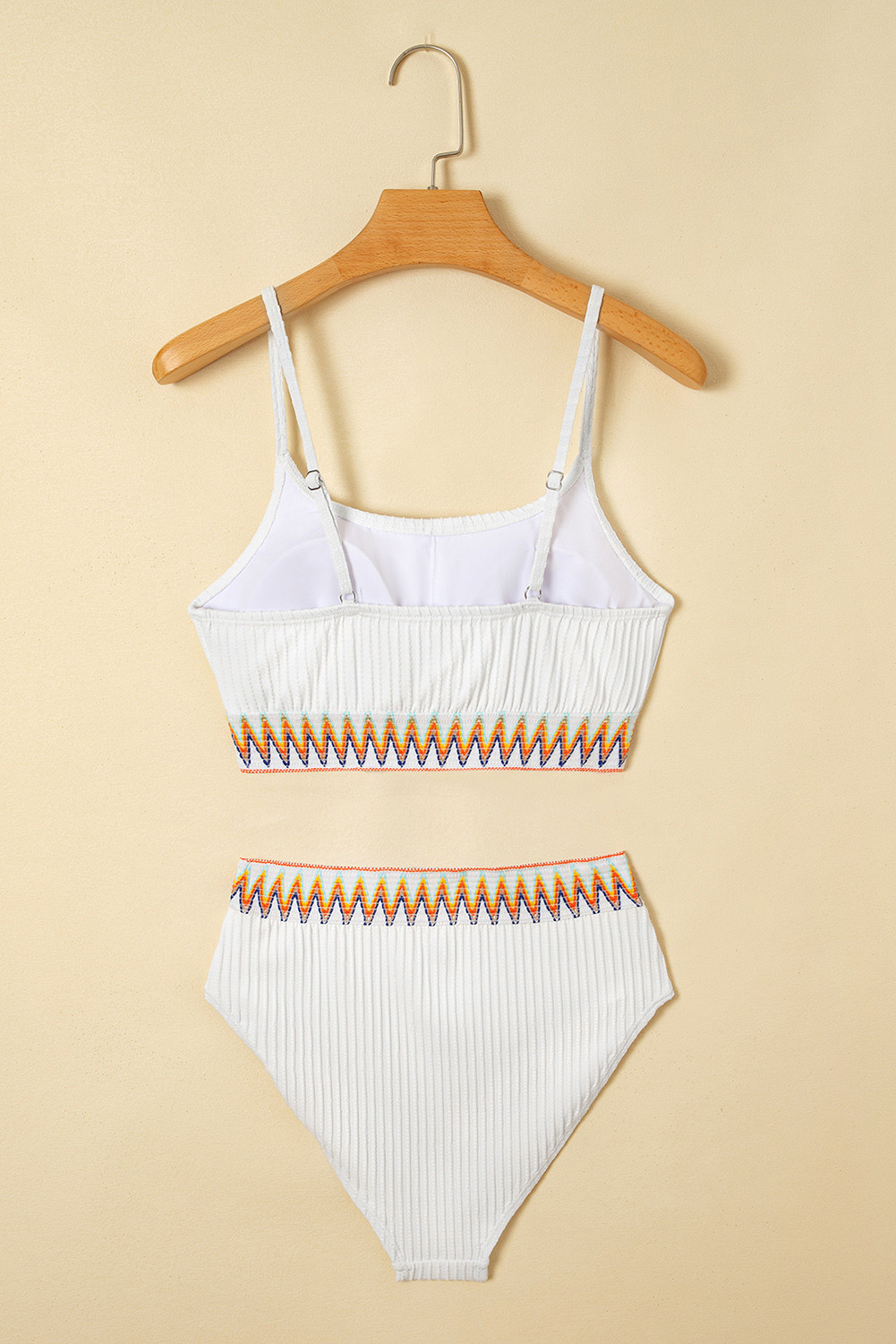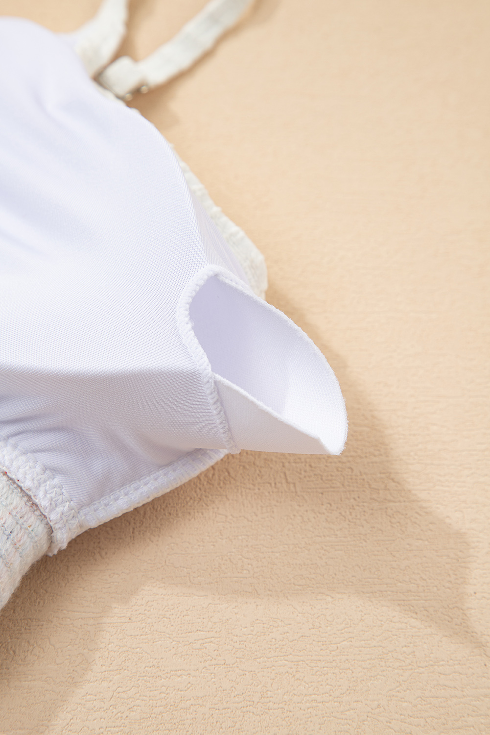 White Textured Contrast Banding Bikini High Waist 2pcs Swimsuit