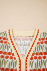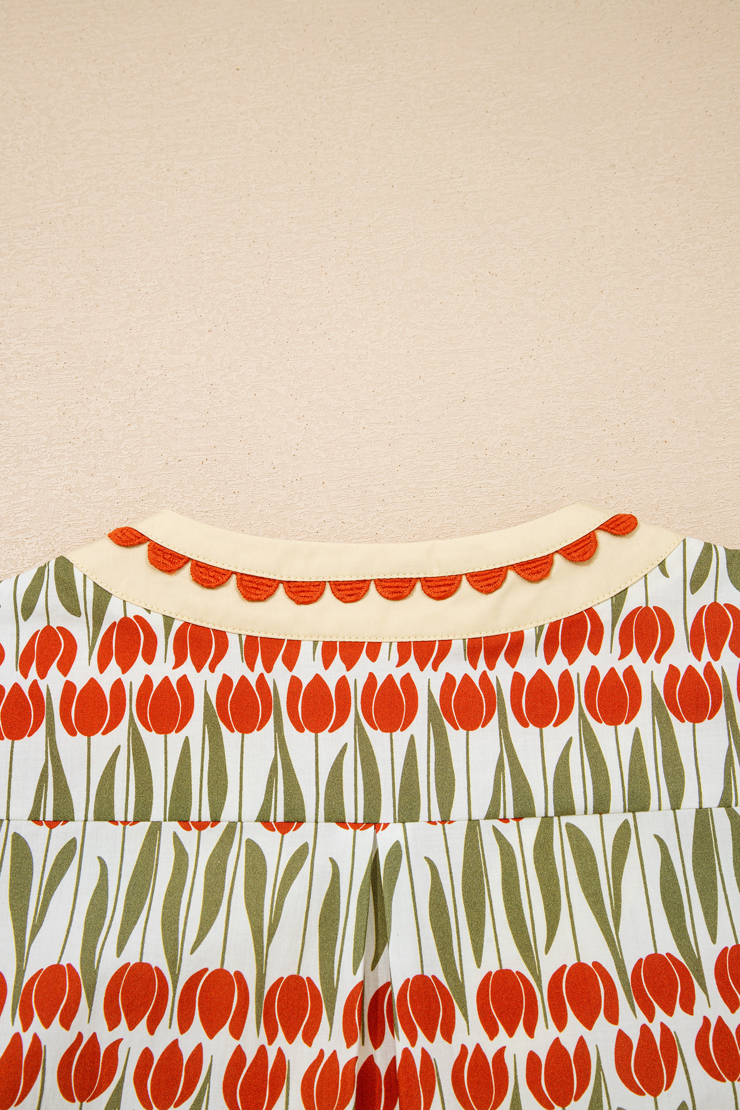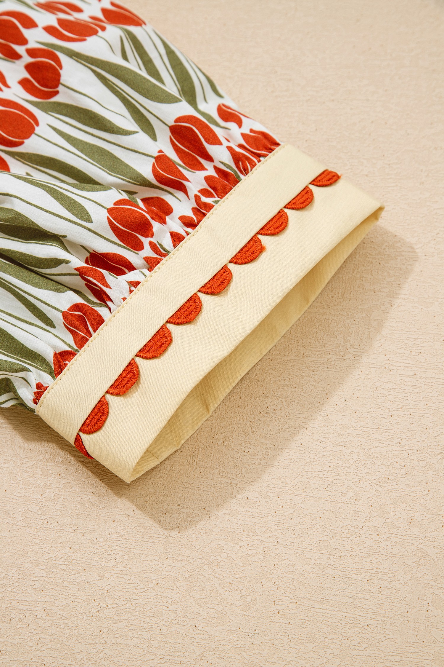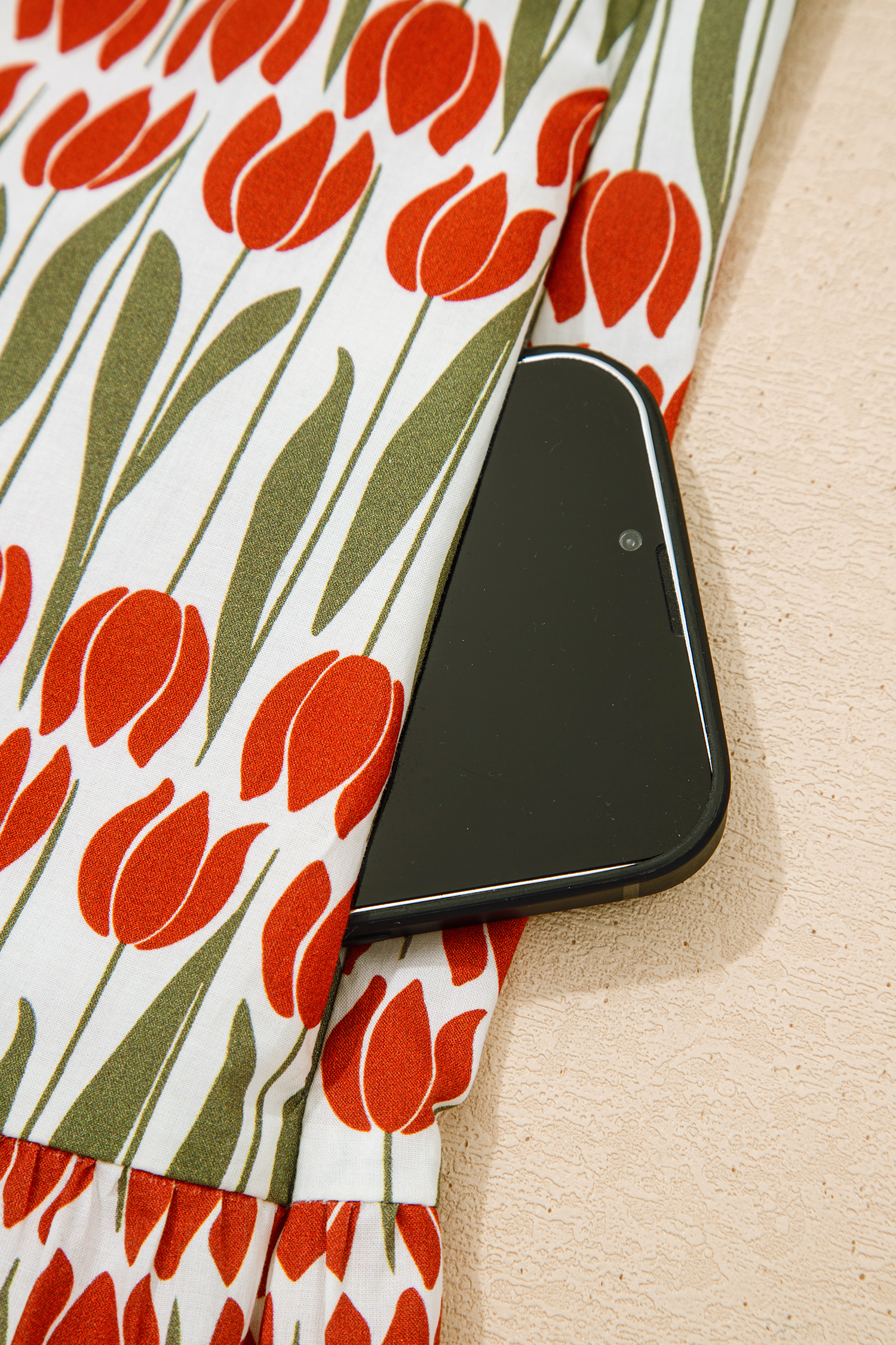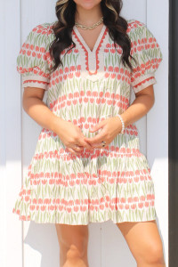 White Tulip Floral Print Cotton Puff Short Sleeve Mini Dress