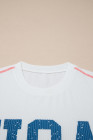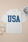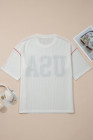 White USA Graphic Half Sleeve Loose Ribbed Top