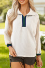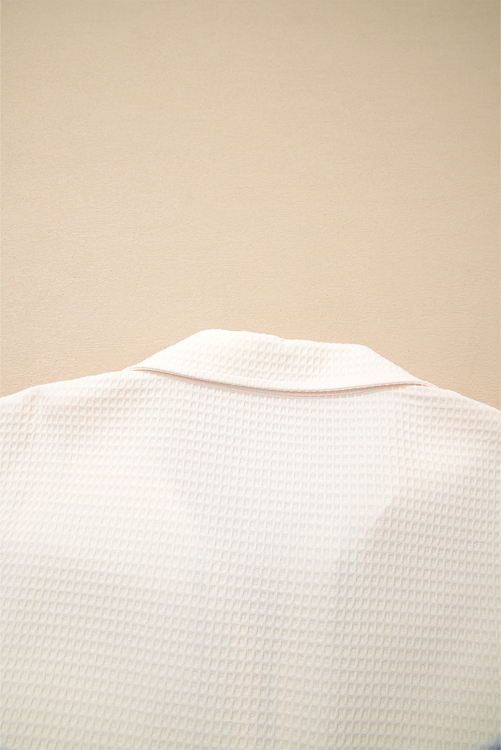 White Waffle Textured Contrast Polo Neck Zip up Jumper