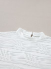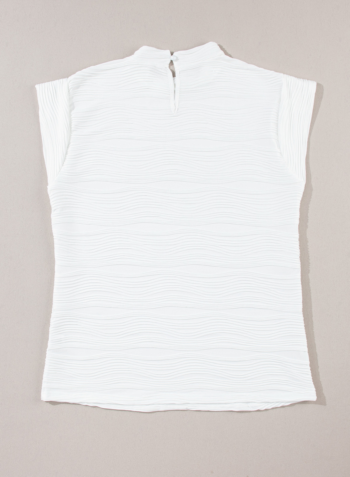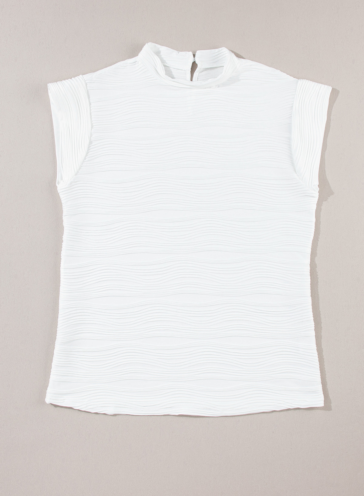 White Wavy Textured Mock Neck Cap Sleeve Top