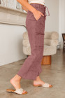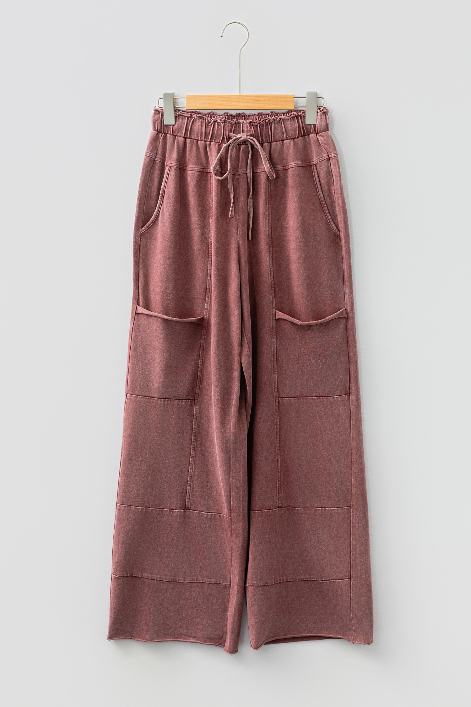 Wild Ginger Mineral Wash Lace-up High Waist Raw Hem Patched Pocket Pants