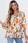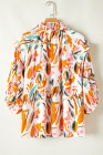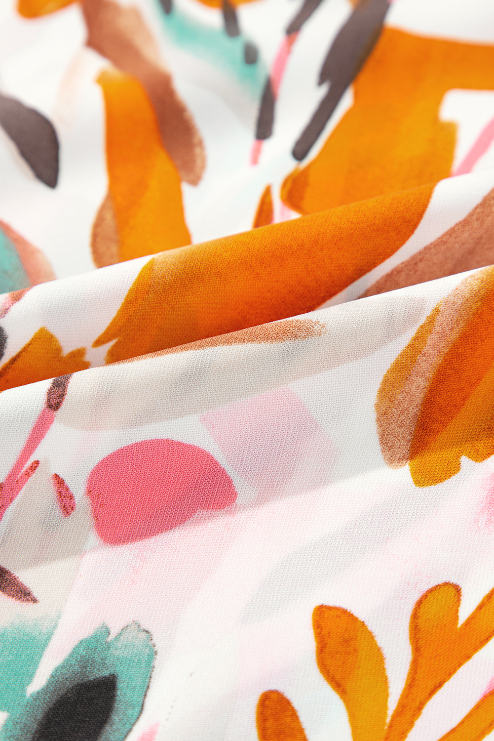 Yellow Abstract Print Drawstring Frilled V Neck 3/4 Sleeve Blouse
