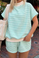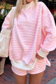 Yellow Stripe Color Block Detail Long Sleeve Pullover Elastic Waist Pull On Shorts 2pcs Set